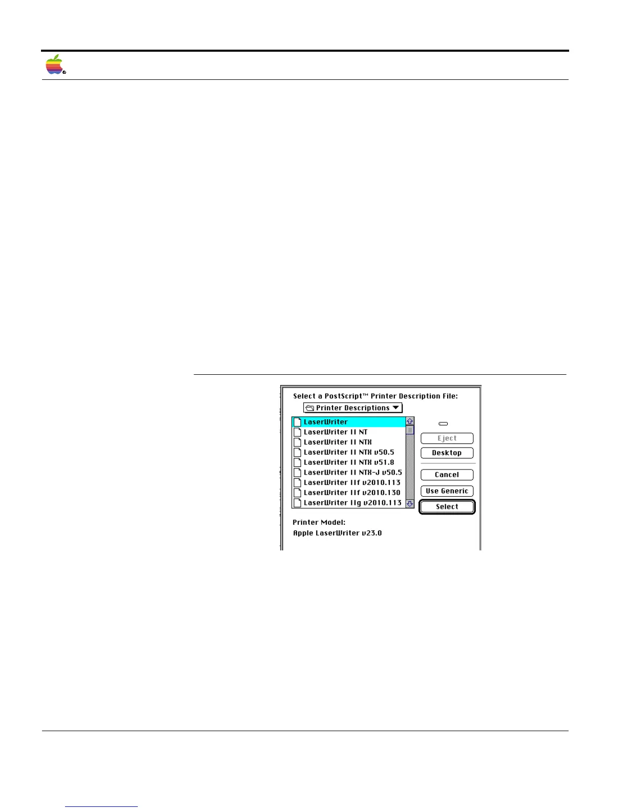 2. Select the printer driver 'LaserWriter 8.'