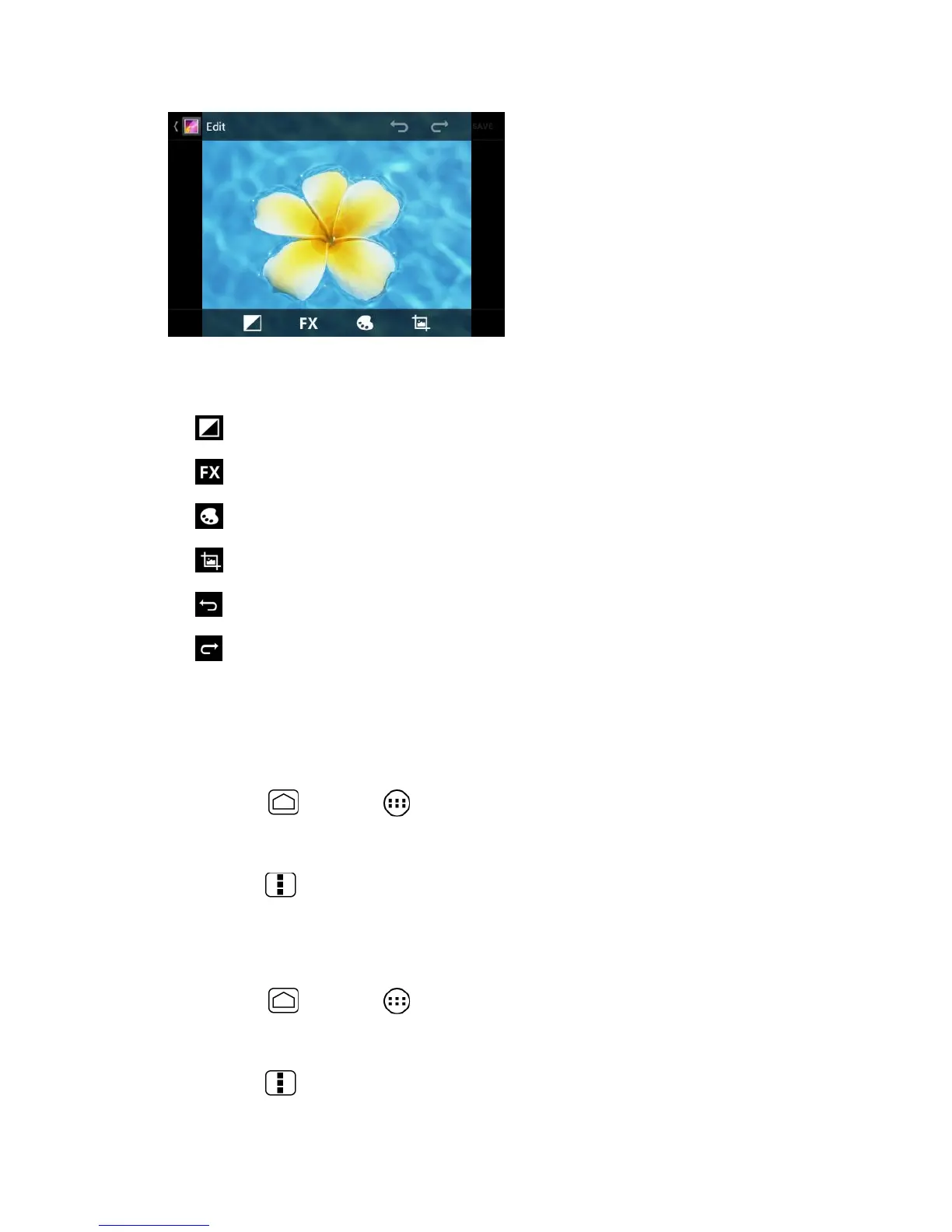 4. Touch the following icon to edit the picture and scroll left and right to select your favorite