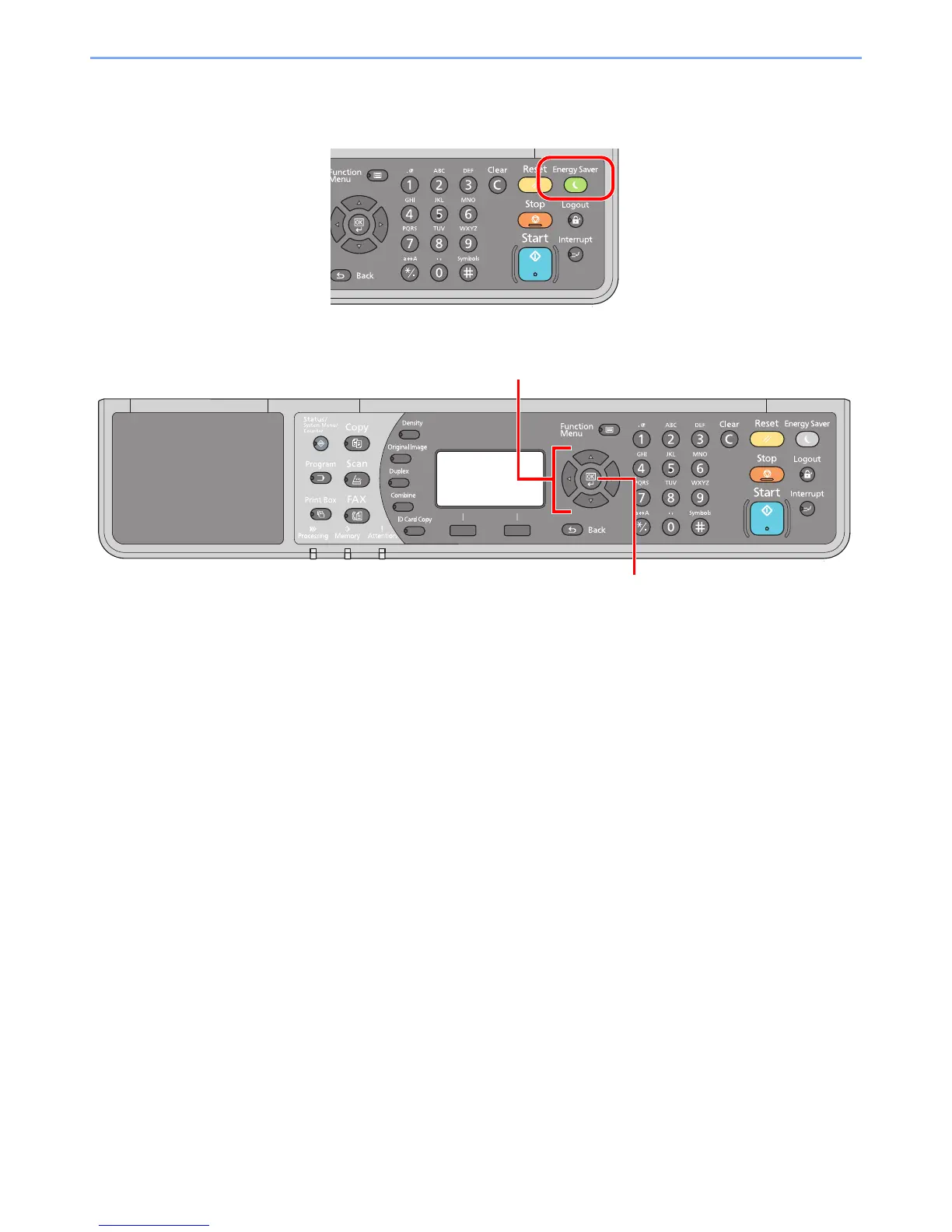 Operation panel keys that are pressed are outlined in red.