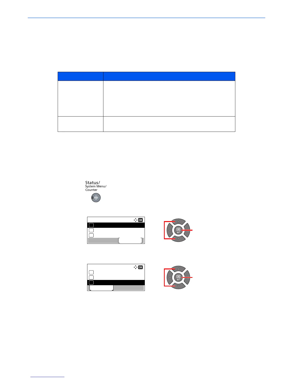 2 Press the [▲] or [▼] key to select [Status], and press the [OK] key.