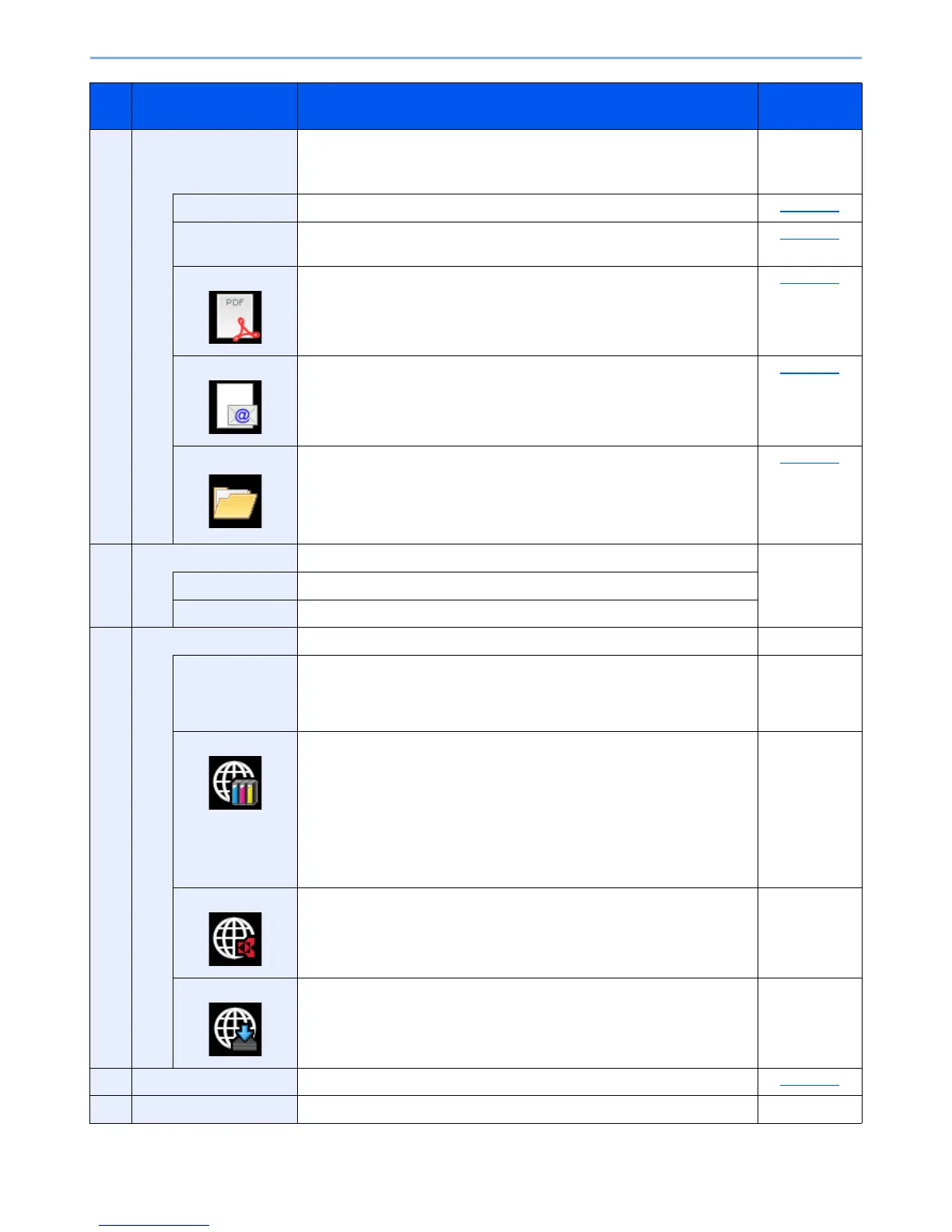 Access to FAX settings. Refer to FAX