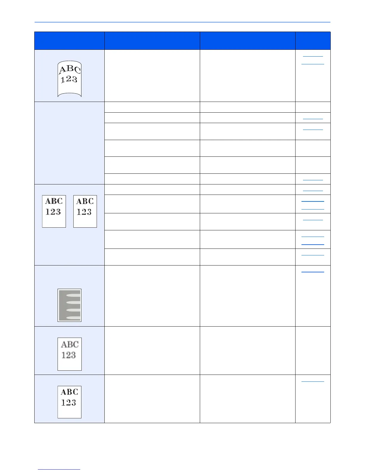 Printouts are curled. Is the paper damp? Replace the paper with new paper. page 3-7