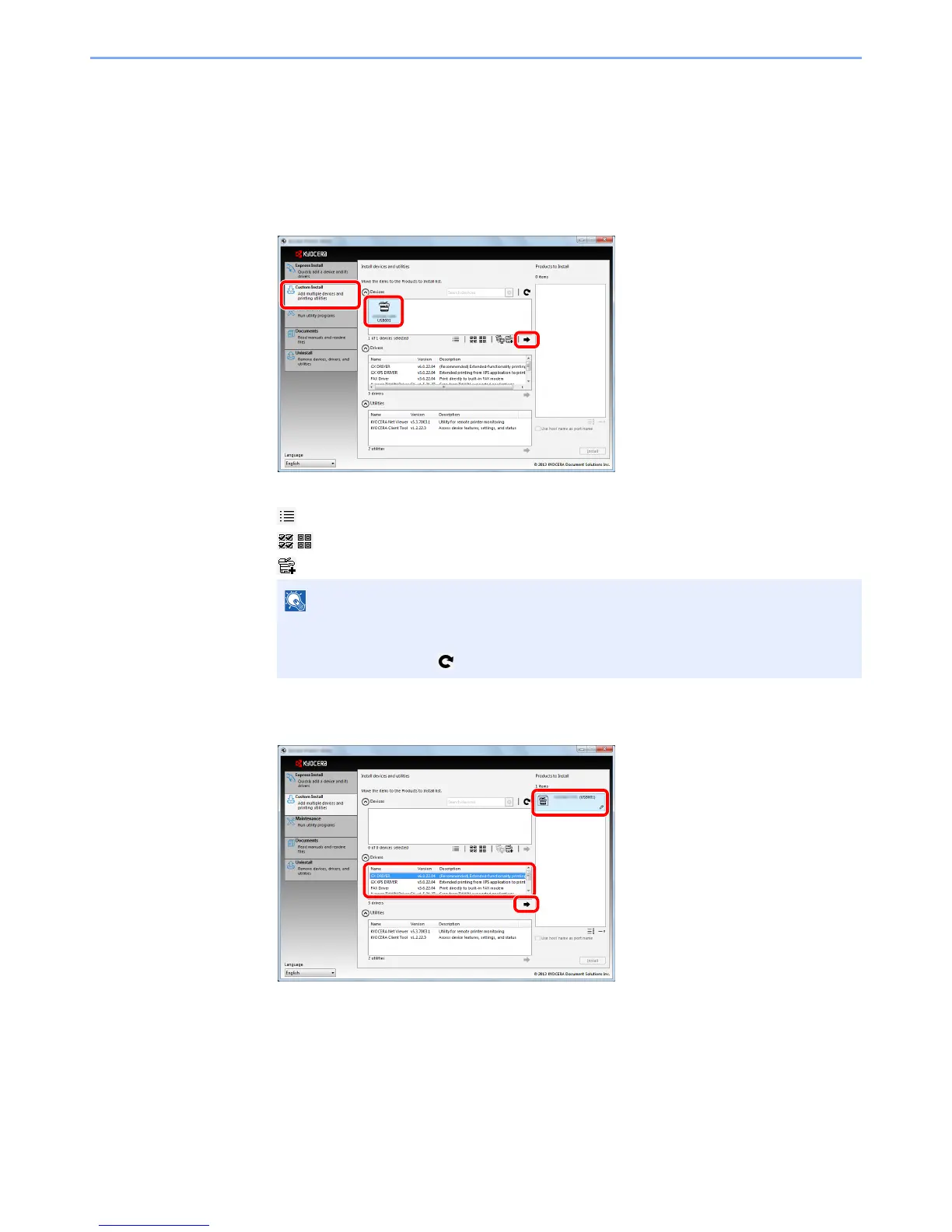 Select the device to be installed, and click the arrow button to move it to the “Products to