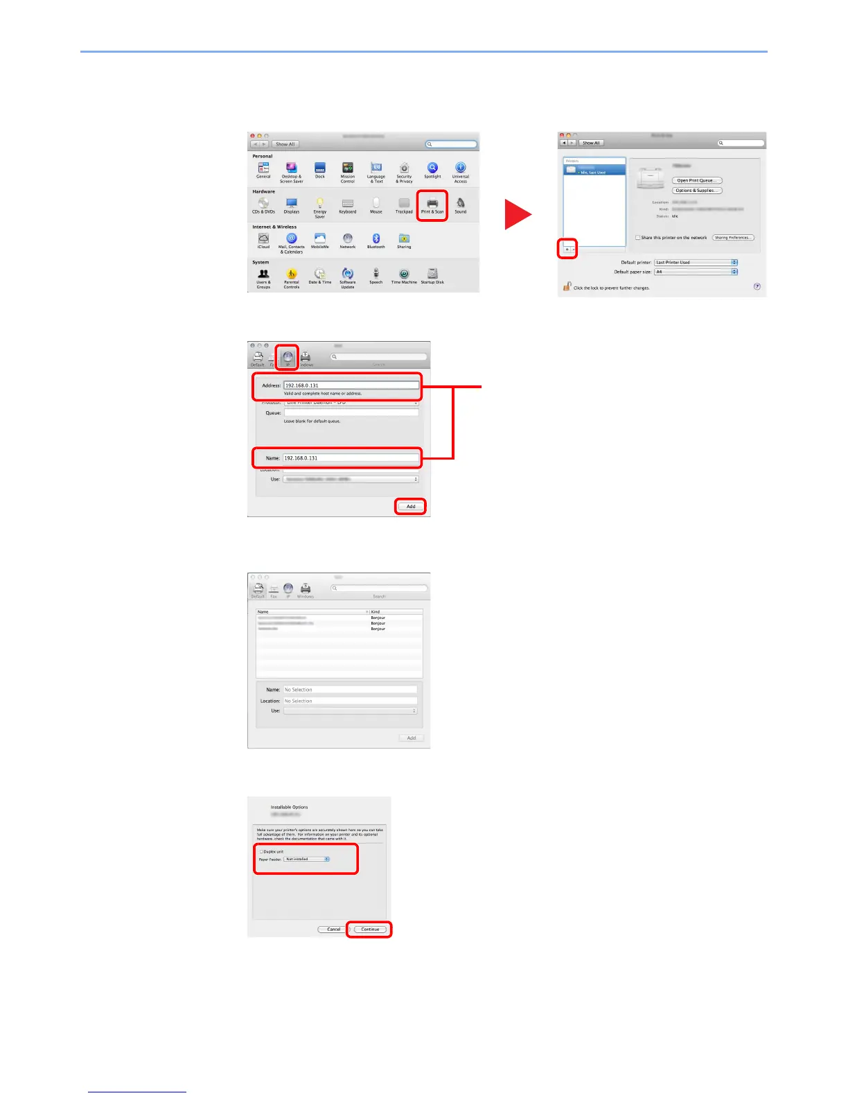2 Click the IP icon for an IP connection and then enter the IP address and printer name.