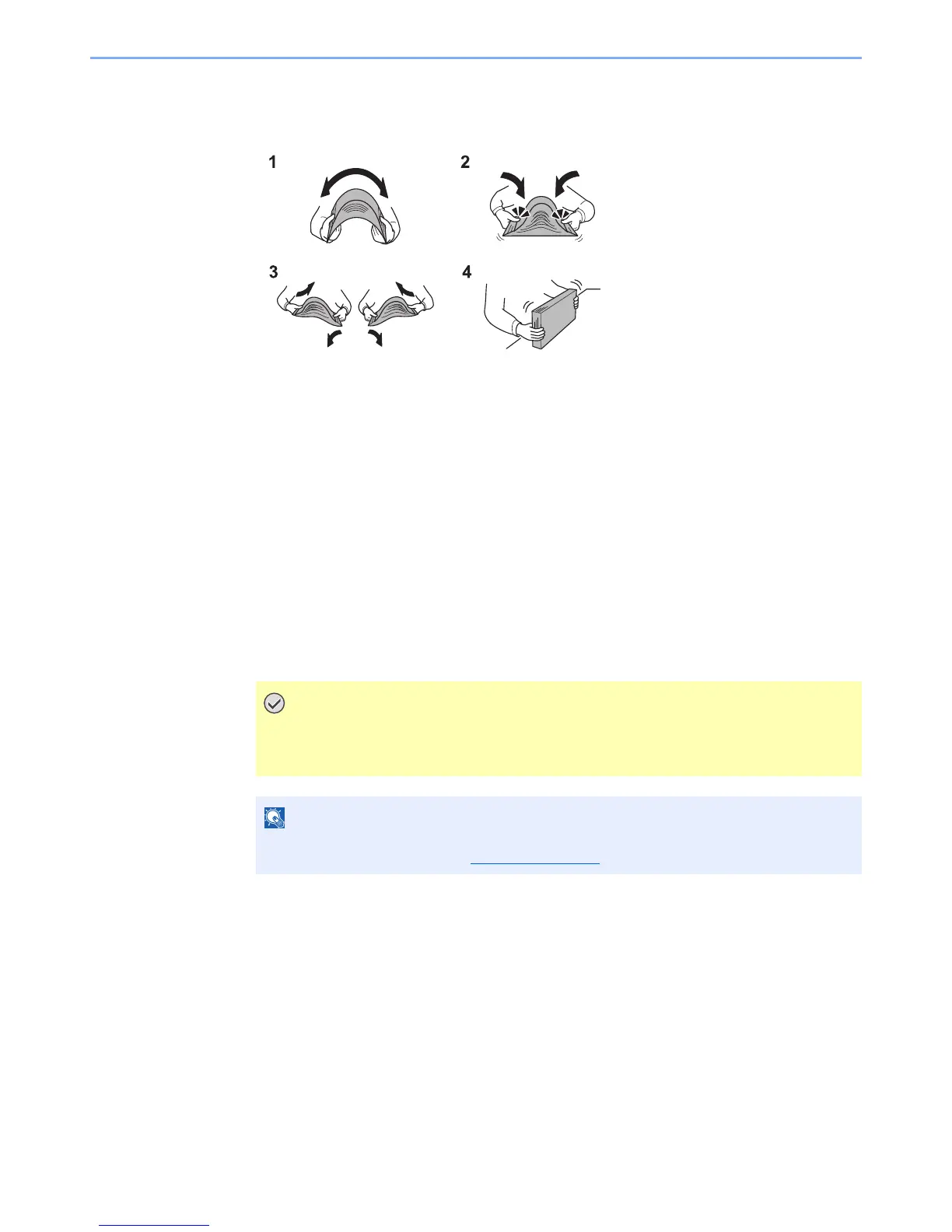 When you open a new package of paper, fan the sheets to separate them slightly prior to loading in the following steps.