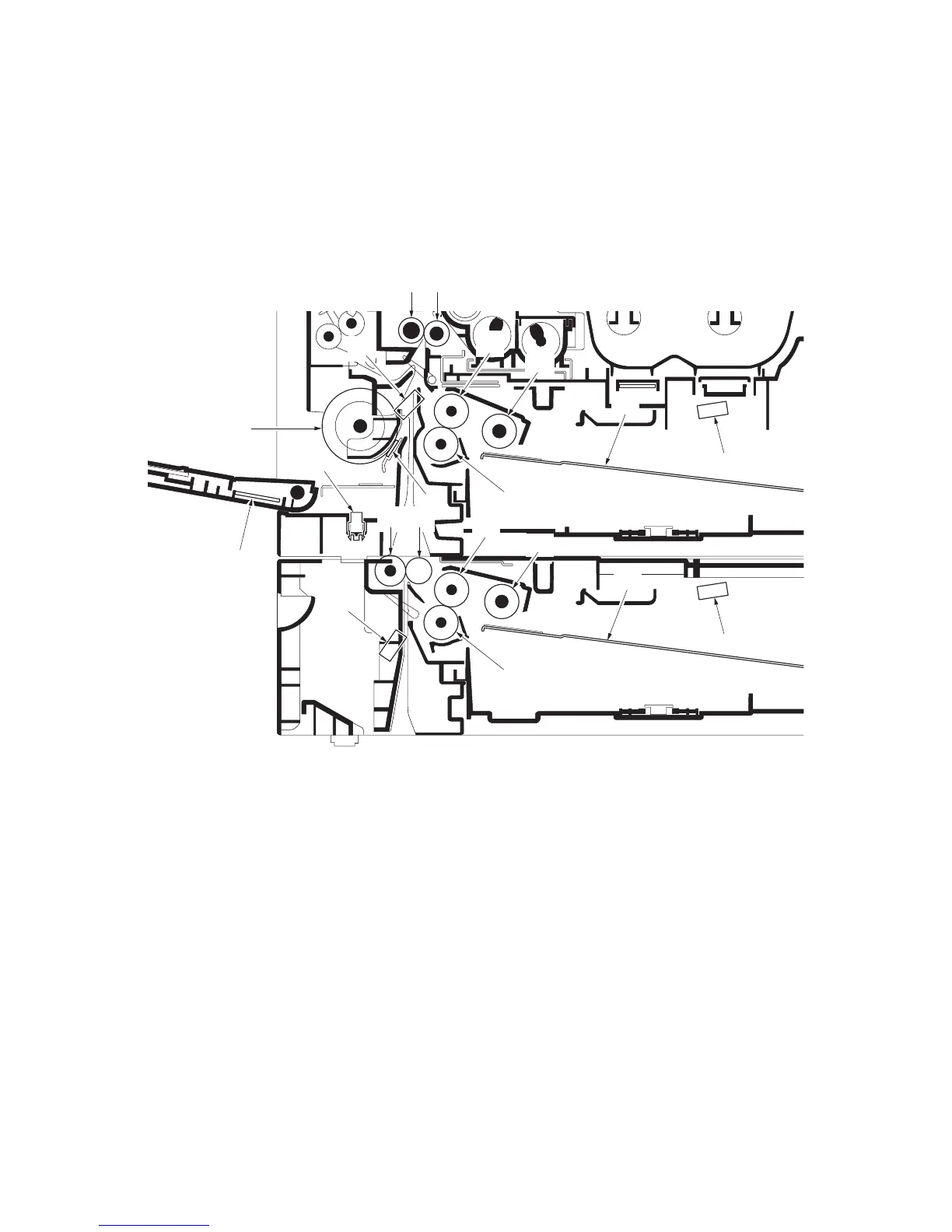 standard for 22 ppm model) or MP tray to the left and right registration rollers, at which point secondary feed takes place