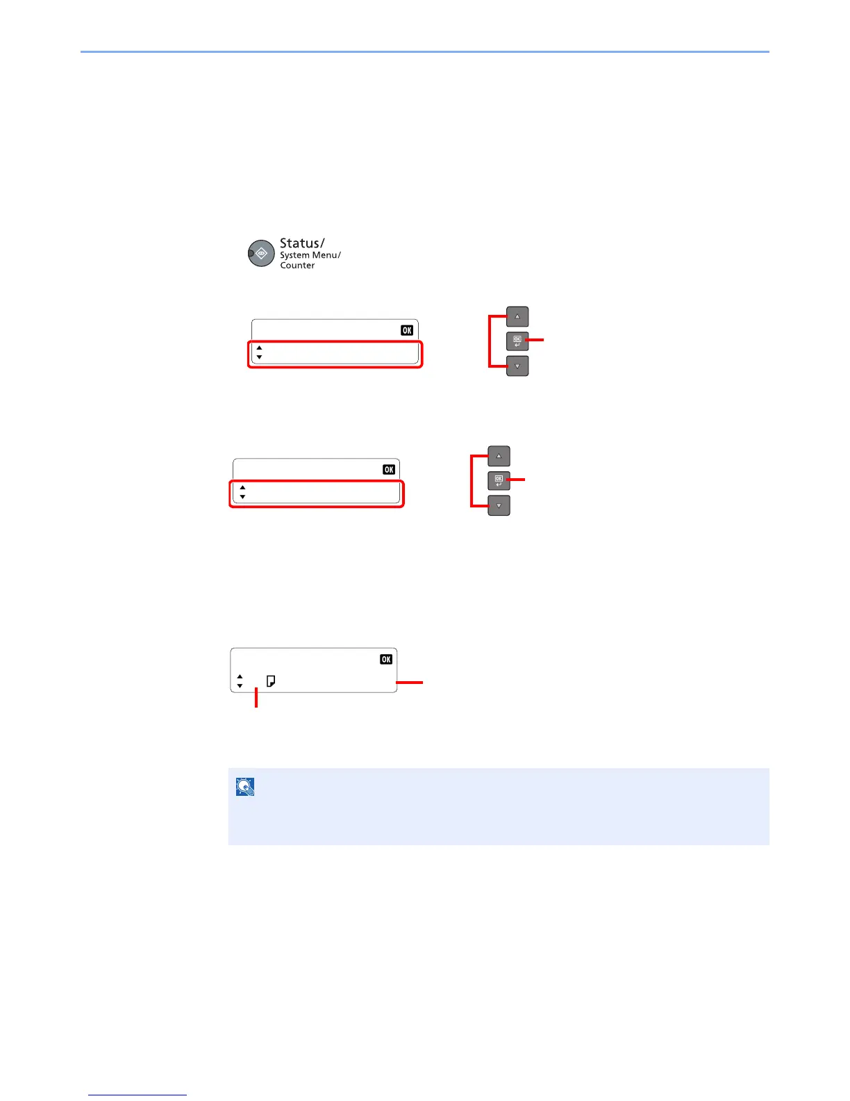 Press the [▲] or [▼] key to select [Toner Status] or [Paper Status], and press the [OK] key