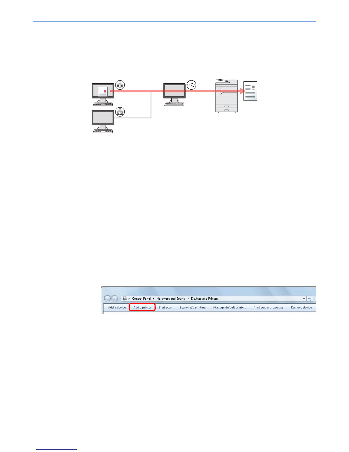 PC), printing from the computer on the network is enabled by setting the machine as the shared printer.