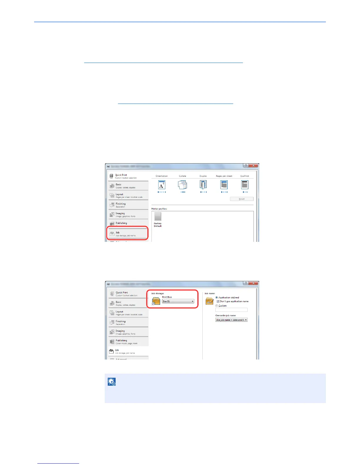 1 Select [Print Box] then select the Print Box where the print job should be stored from the