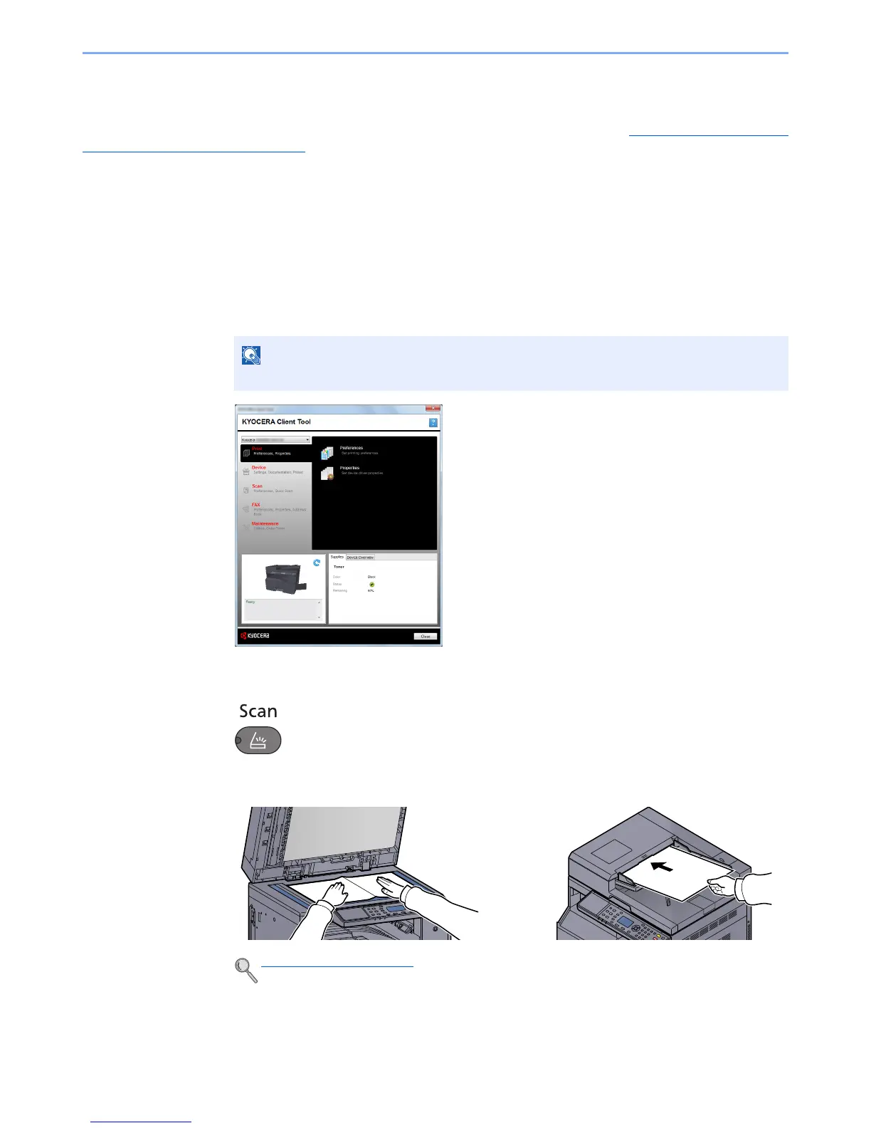 folder where to save scanned image and image quality using KYOCERA Client Tool. Refer to Default Settings on the PC