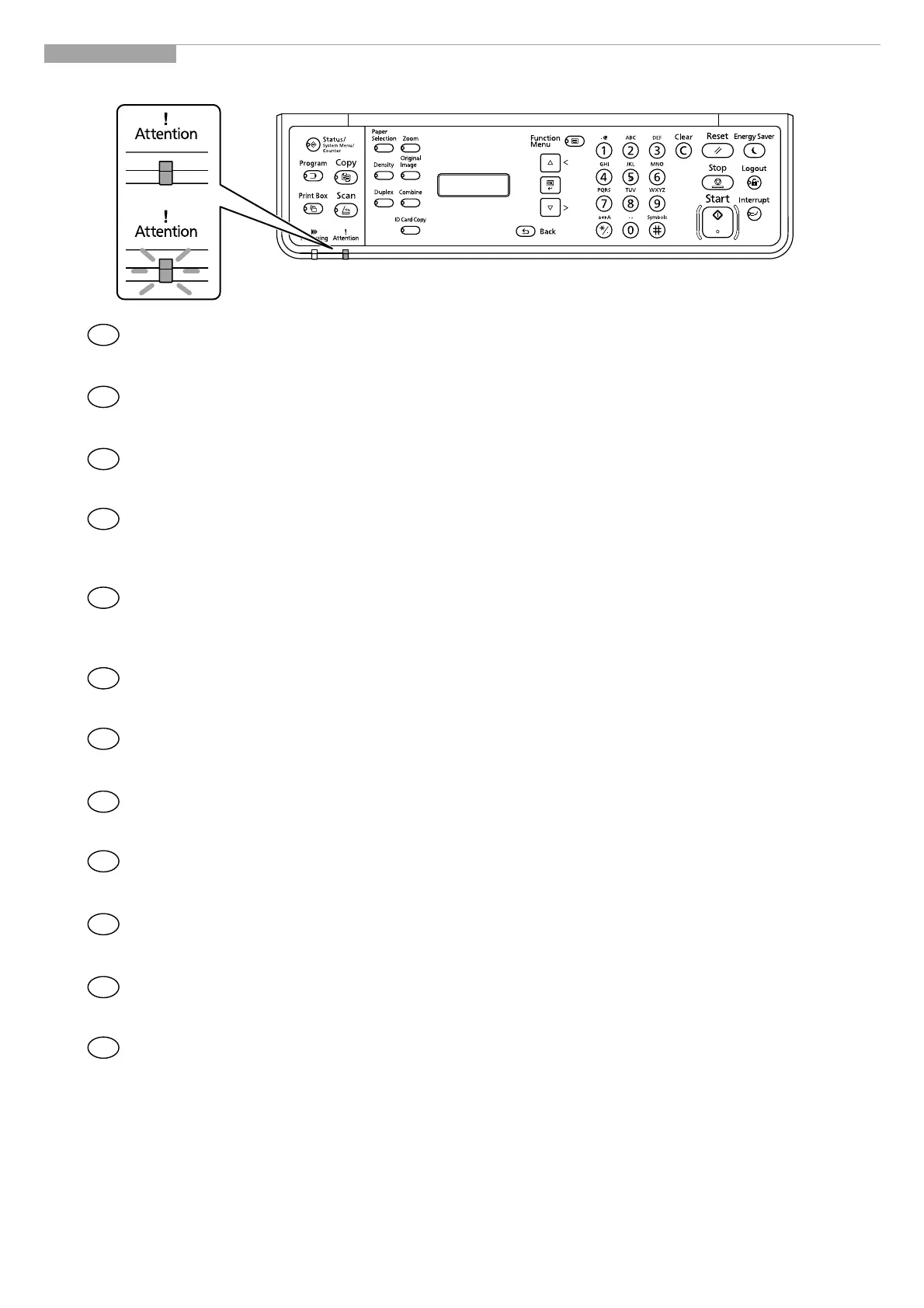 Εάν παρουσιαστεί σφάλμα στο μηχάνημα, θα ανάψει ή θα αναβοσβήσει η ένδειξη Προσοχής στον πίνακα λειτουργίας.