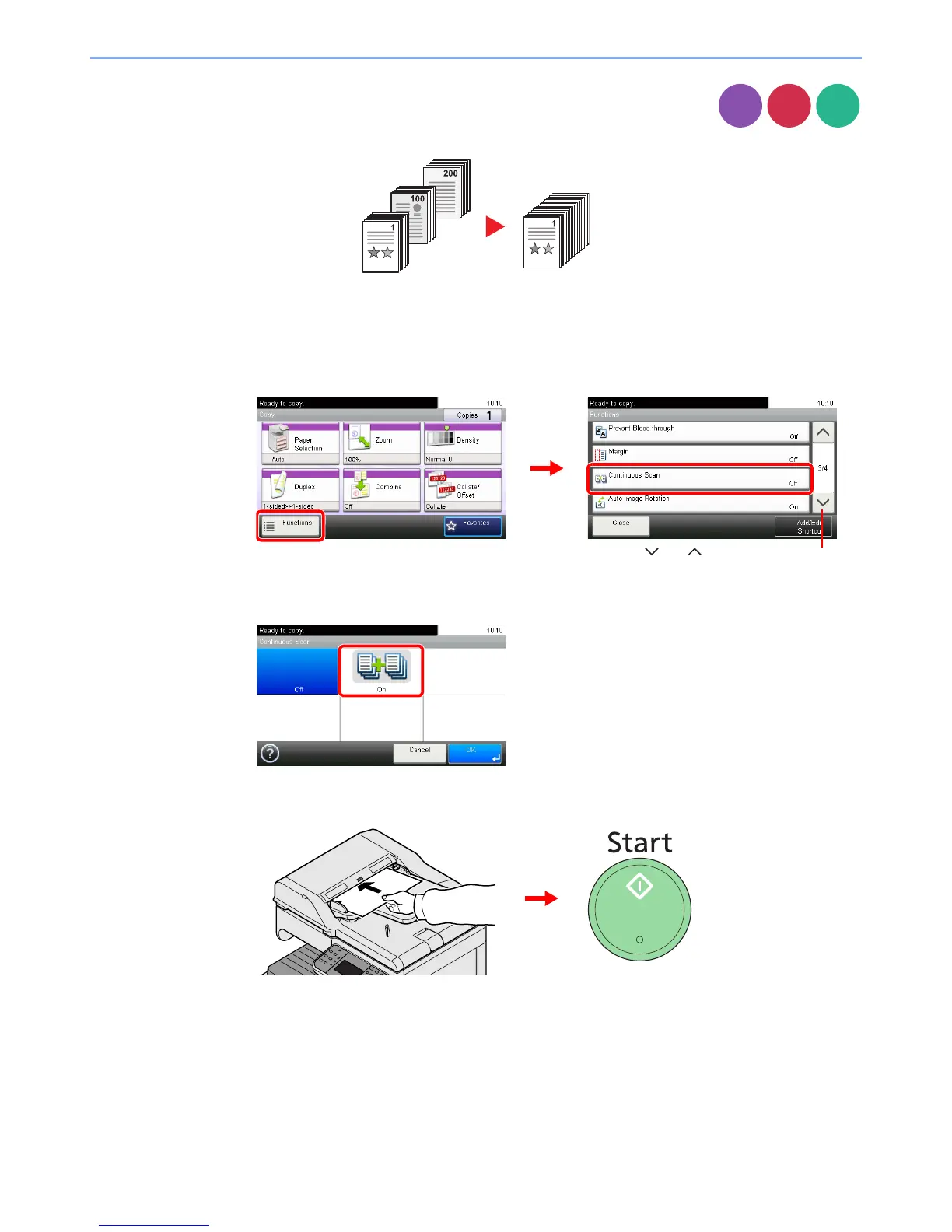 2 Press [Functions] and then [Continuous Scan].