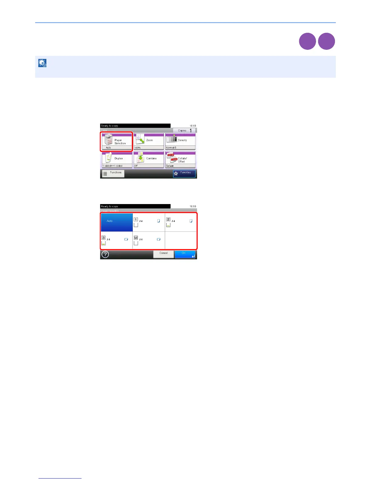 If [Auto] is selected, the paper matching the size of the original is selected automatically.