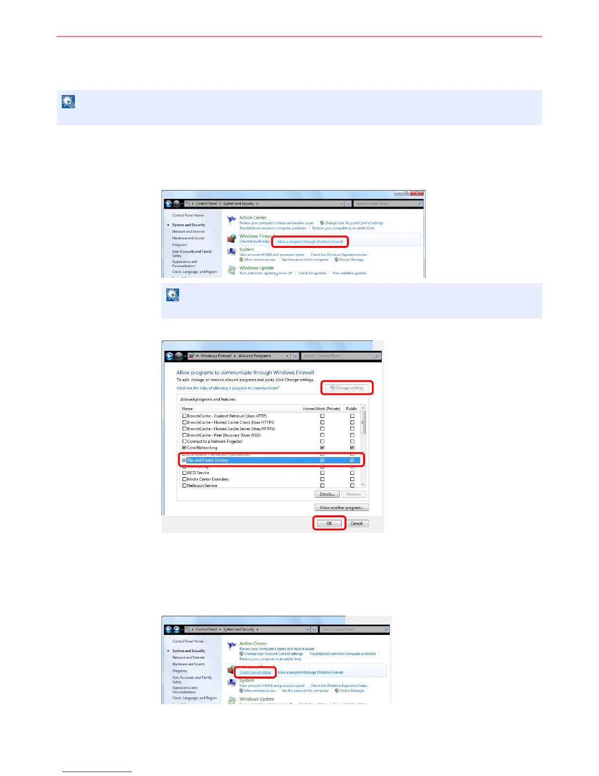 1 From the Start menu, select Control Panel, System and Security, and Allow a program