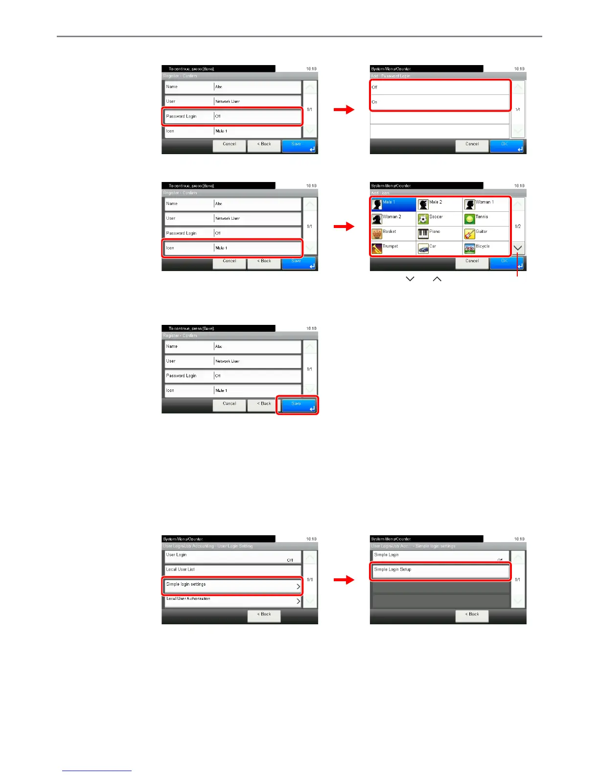 1 Referring to User Login Settings on page 9-26, display the screen.