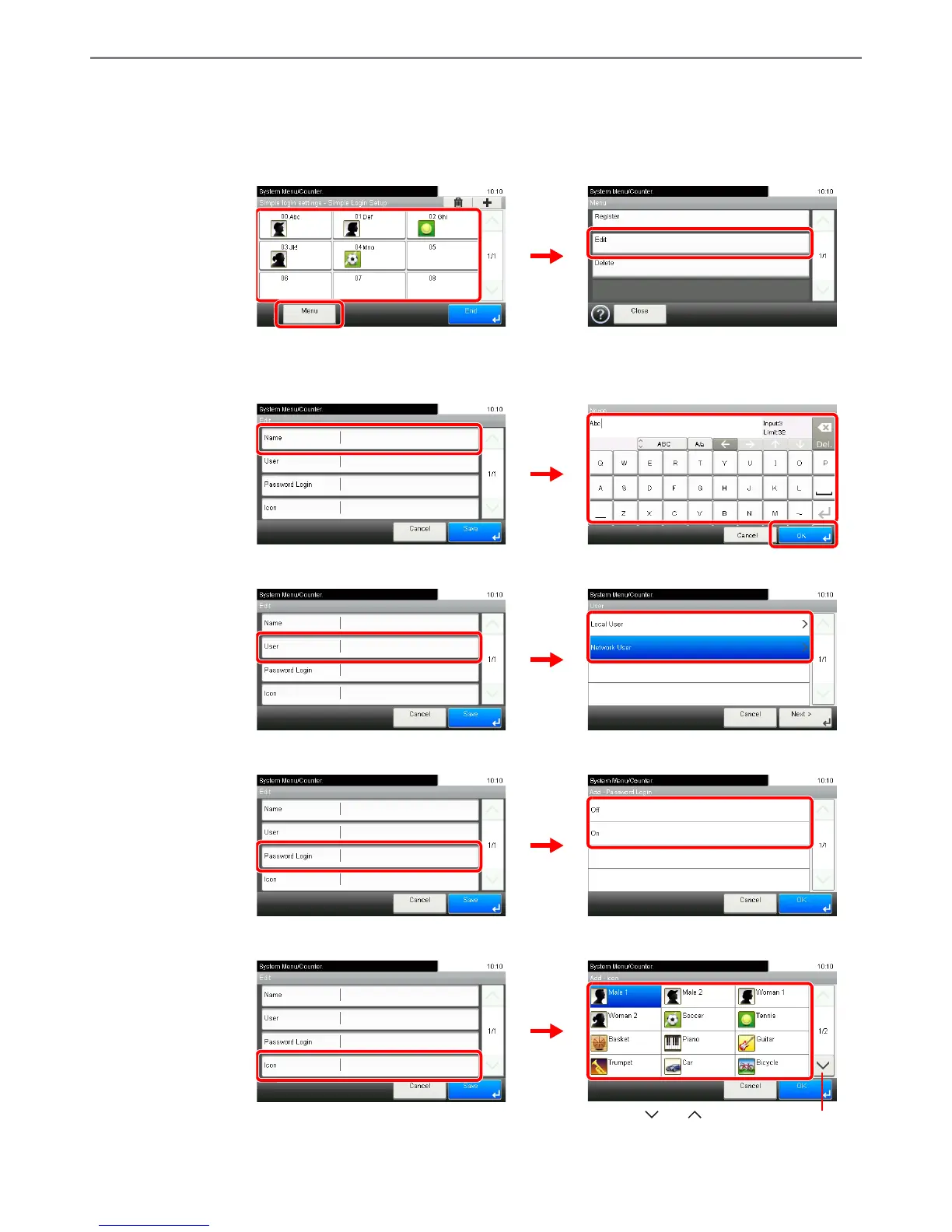 1 Select the user whose information you wish to edit and press [Menu] and then [Edit].