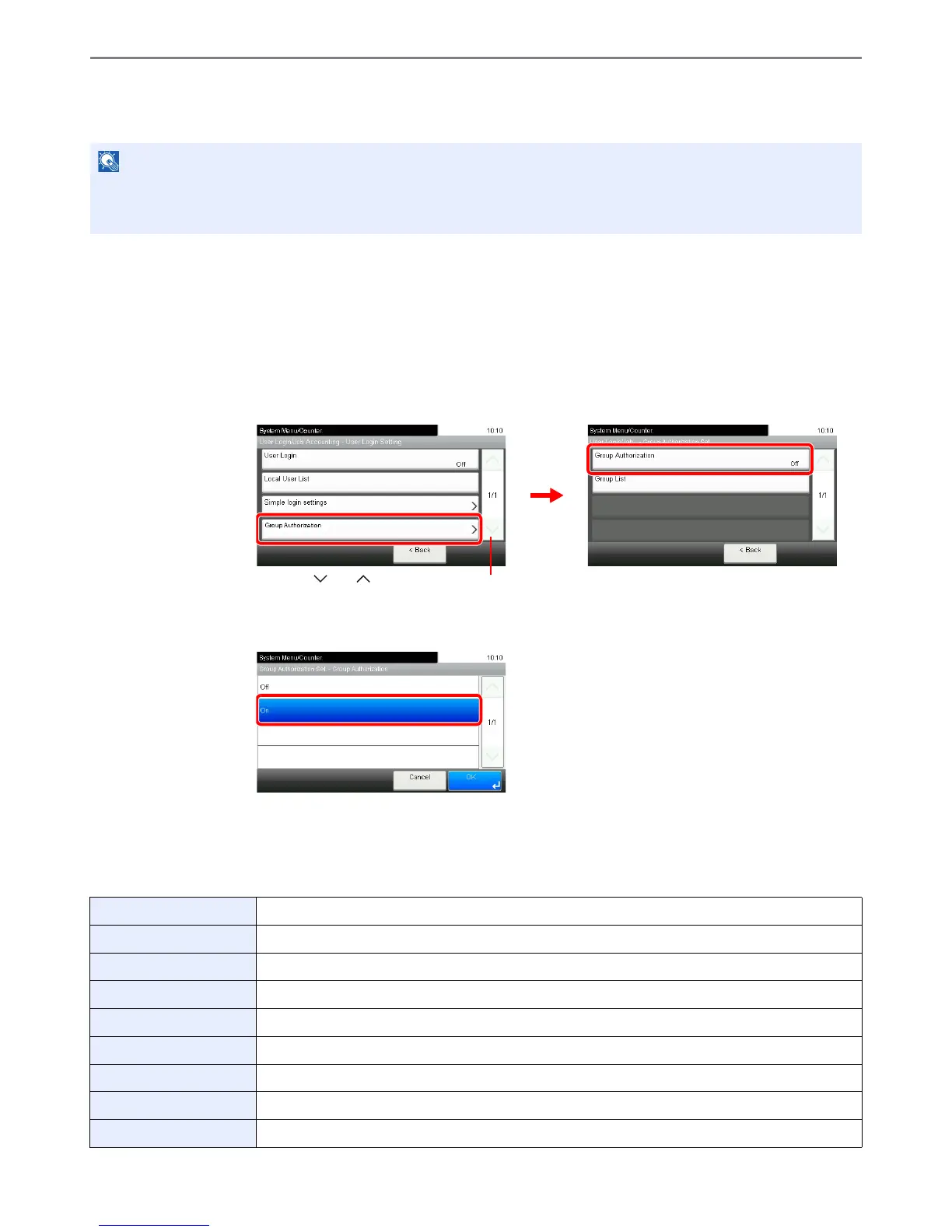 To use the group authorization settings, [Network Authentication] must be selected for the authentication method and