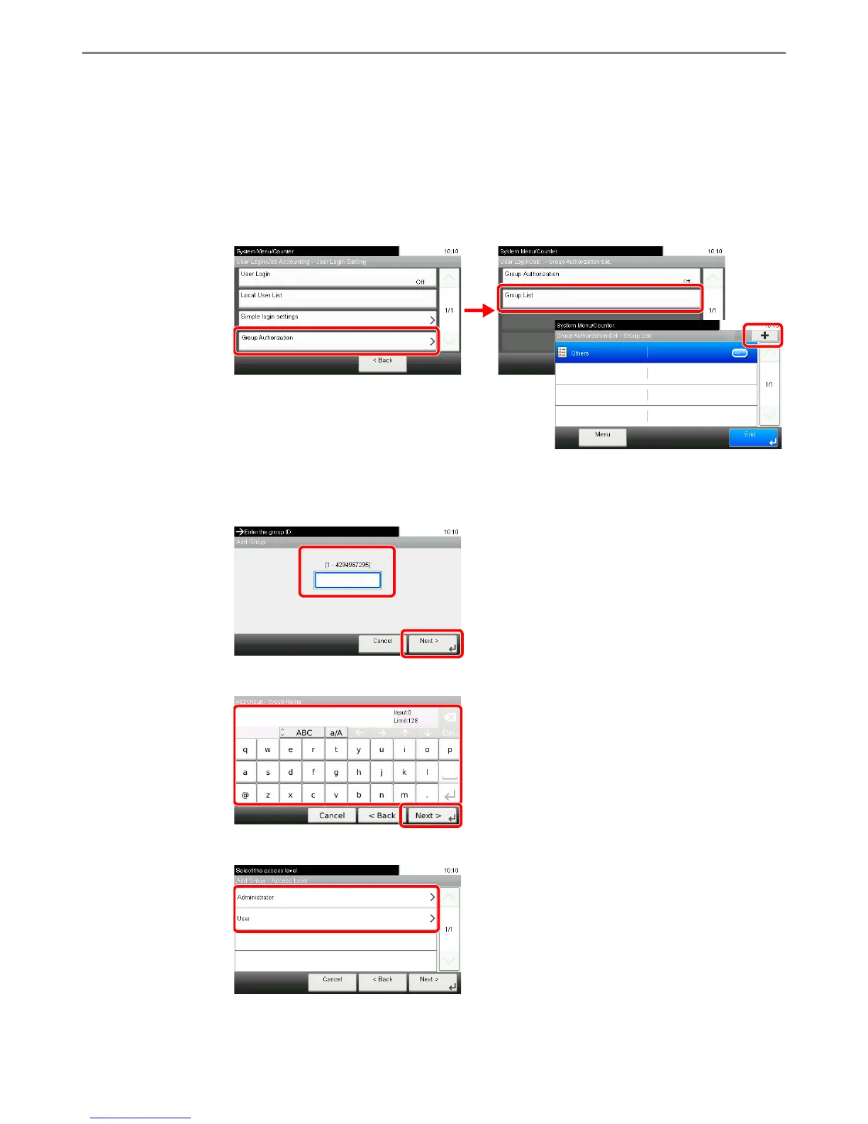 1 Referring to User Login Settings on page 9-26, display the screen.