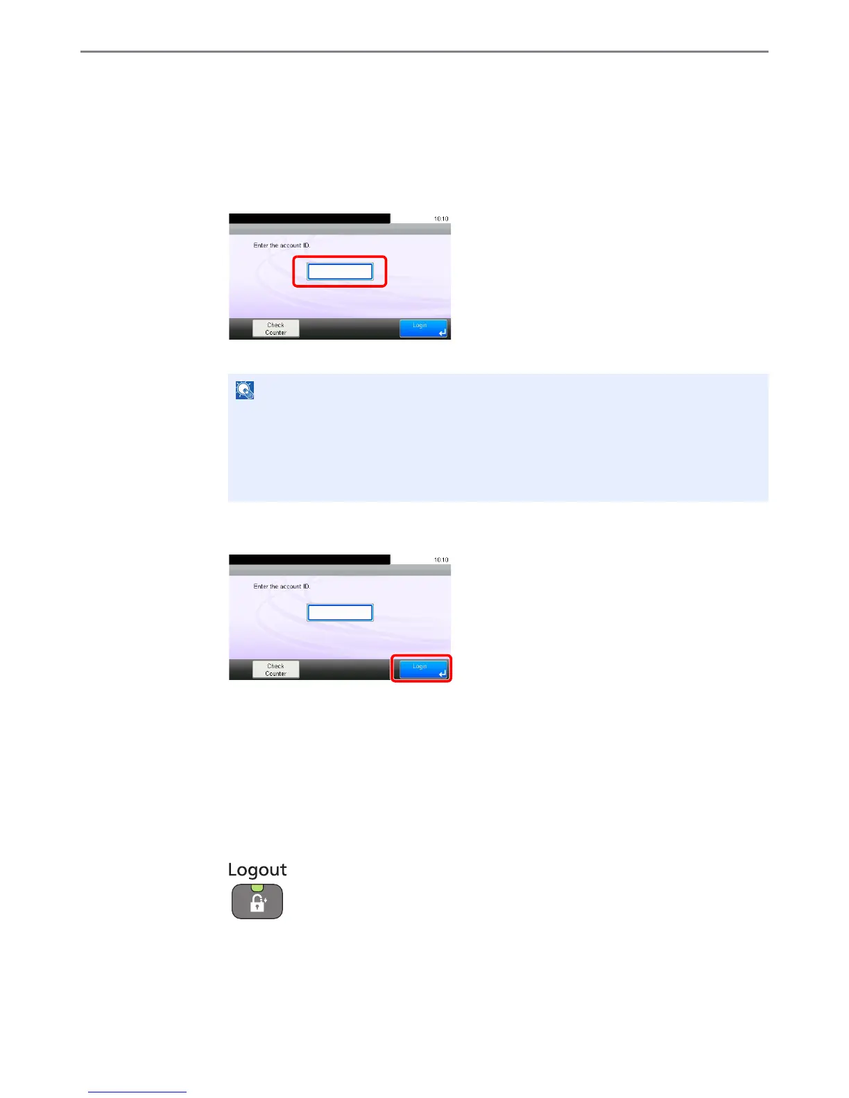 If job accounting is enabled, an account ID entry screen appears each time you use this machine.