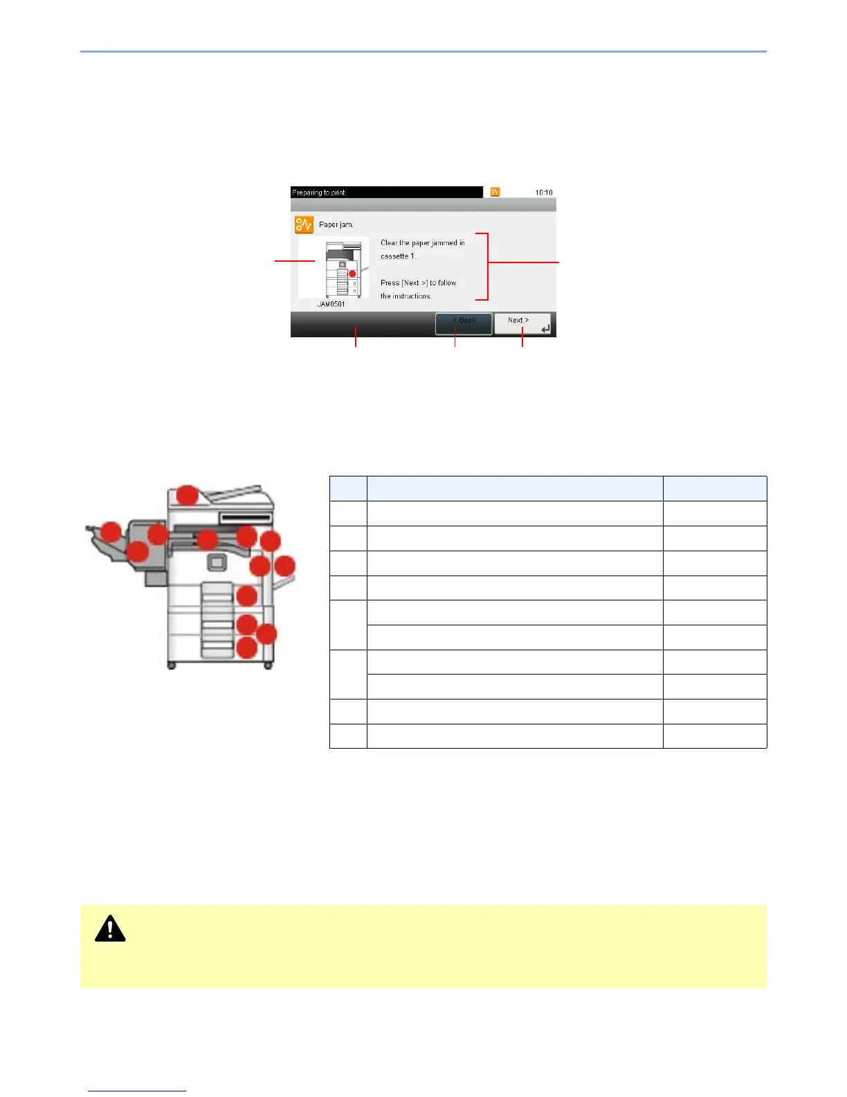 If a paper jam occurs, the touch panel will display Paper Jam. and the machine will stop. Refer to these procedures to