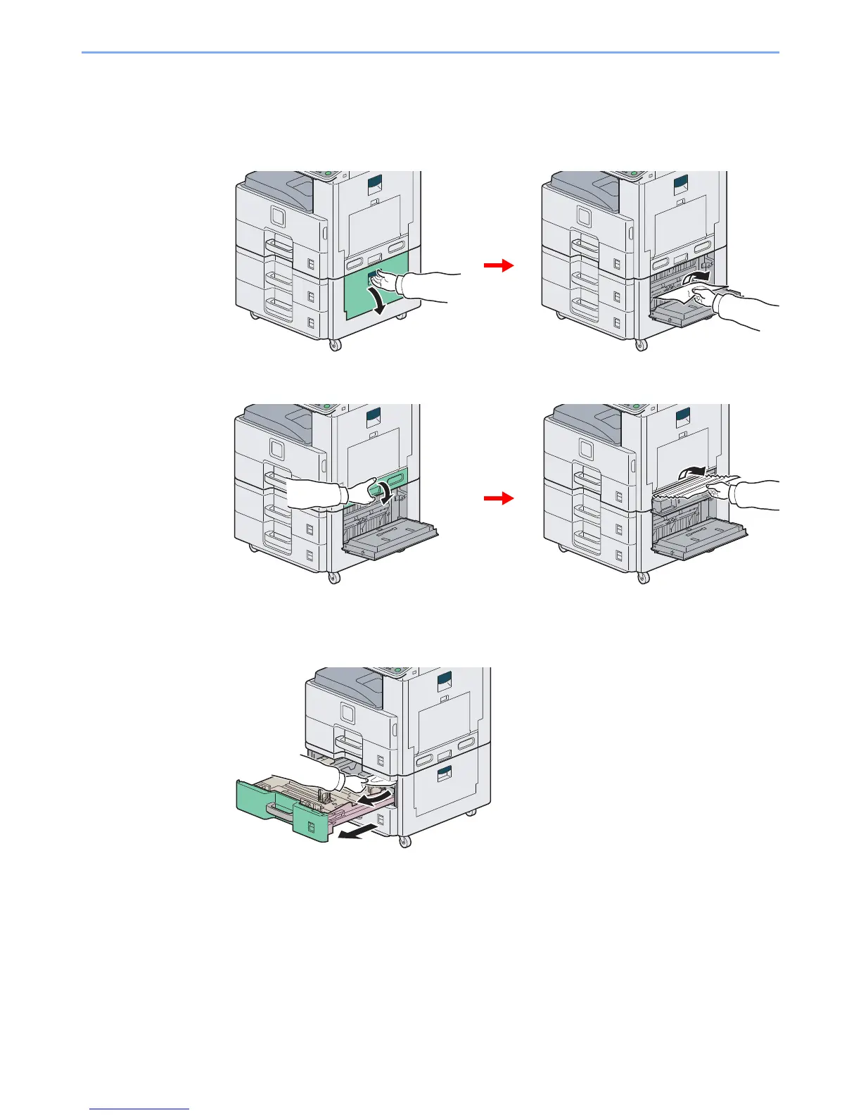 Follow the steps below to clear paper jams in cassette 2 or 3.