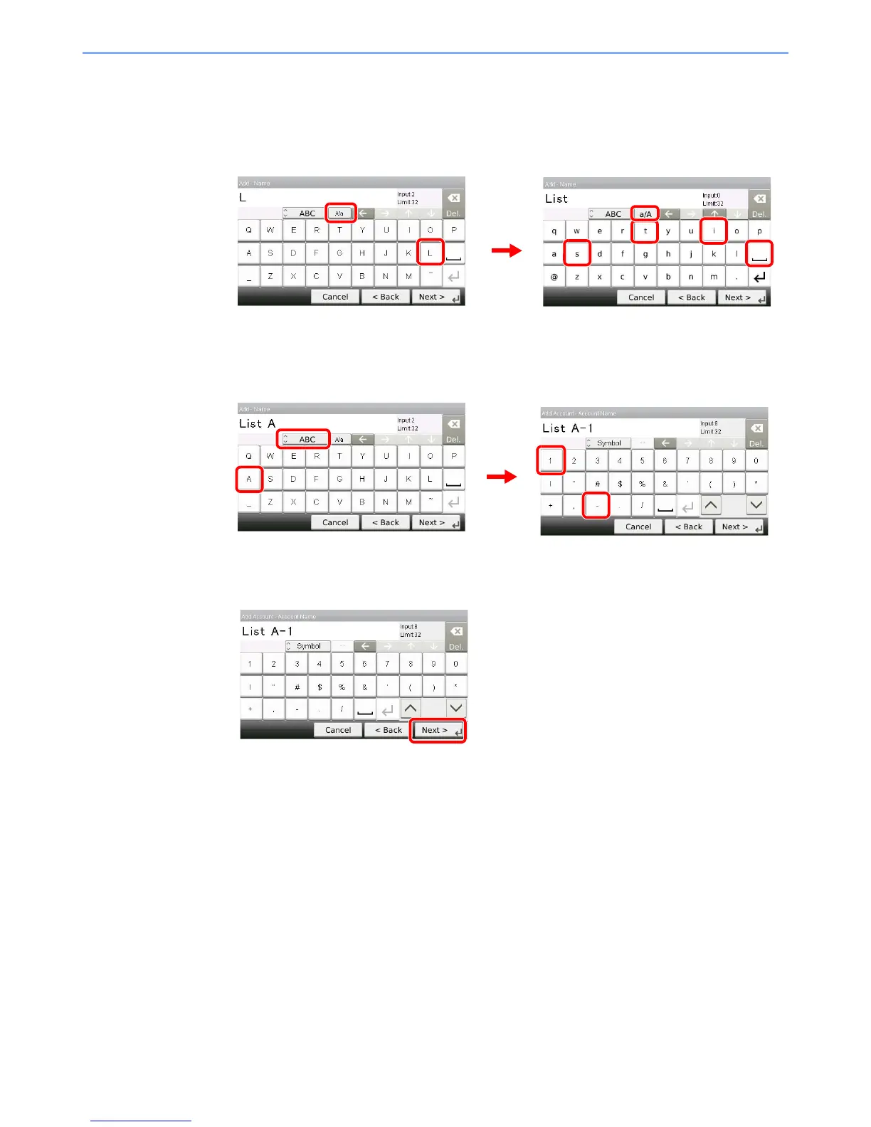 To enter numbers or symbols, press [ABC] to display [Symbol].
