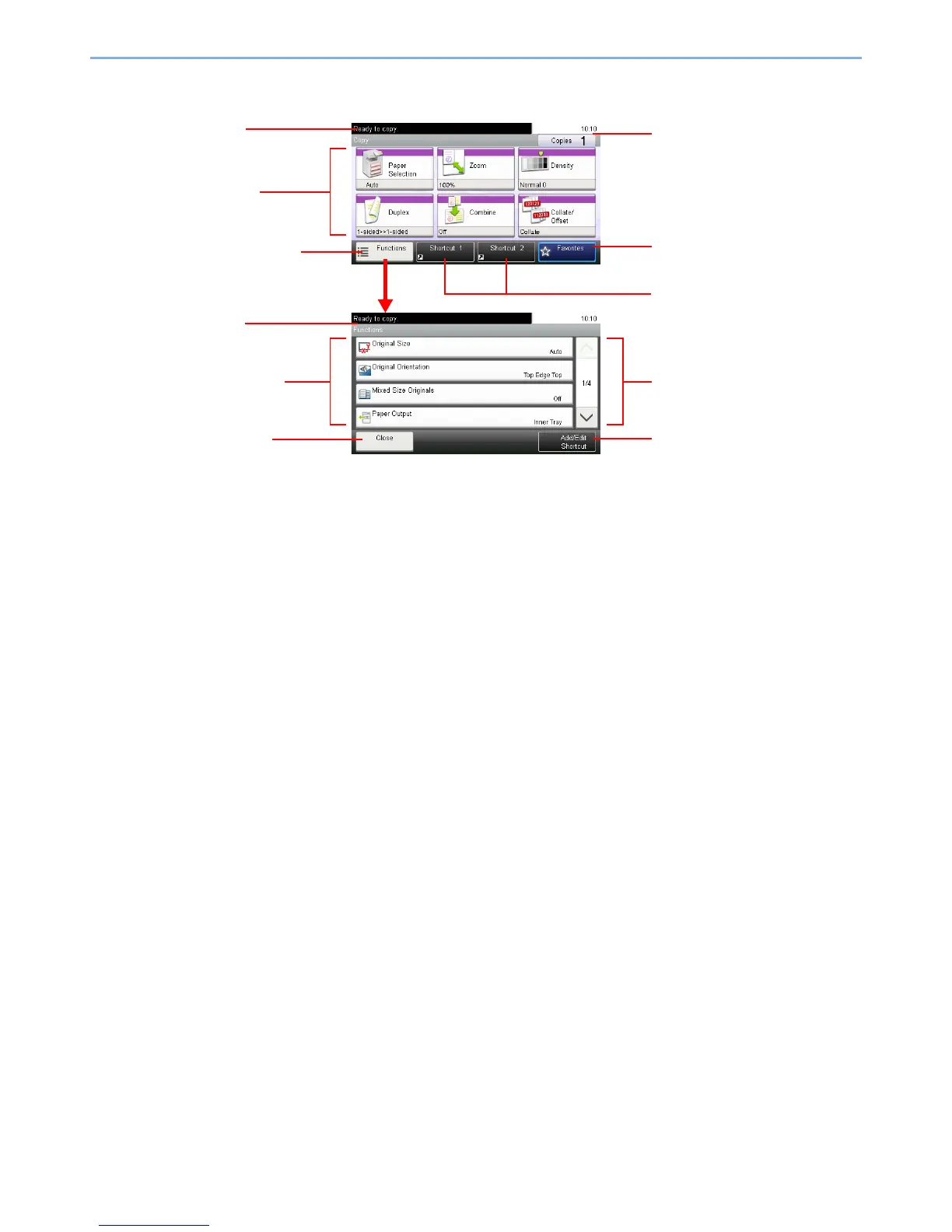 Displays available functions.