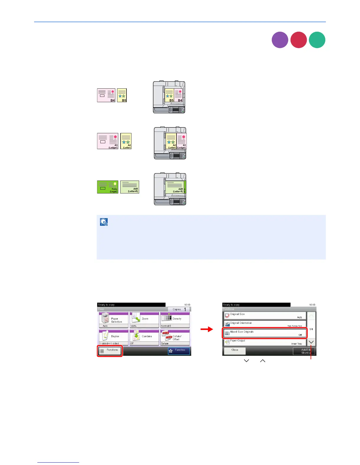 Up to 30 sheets can be placed in the document processor for mixed size originals.