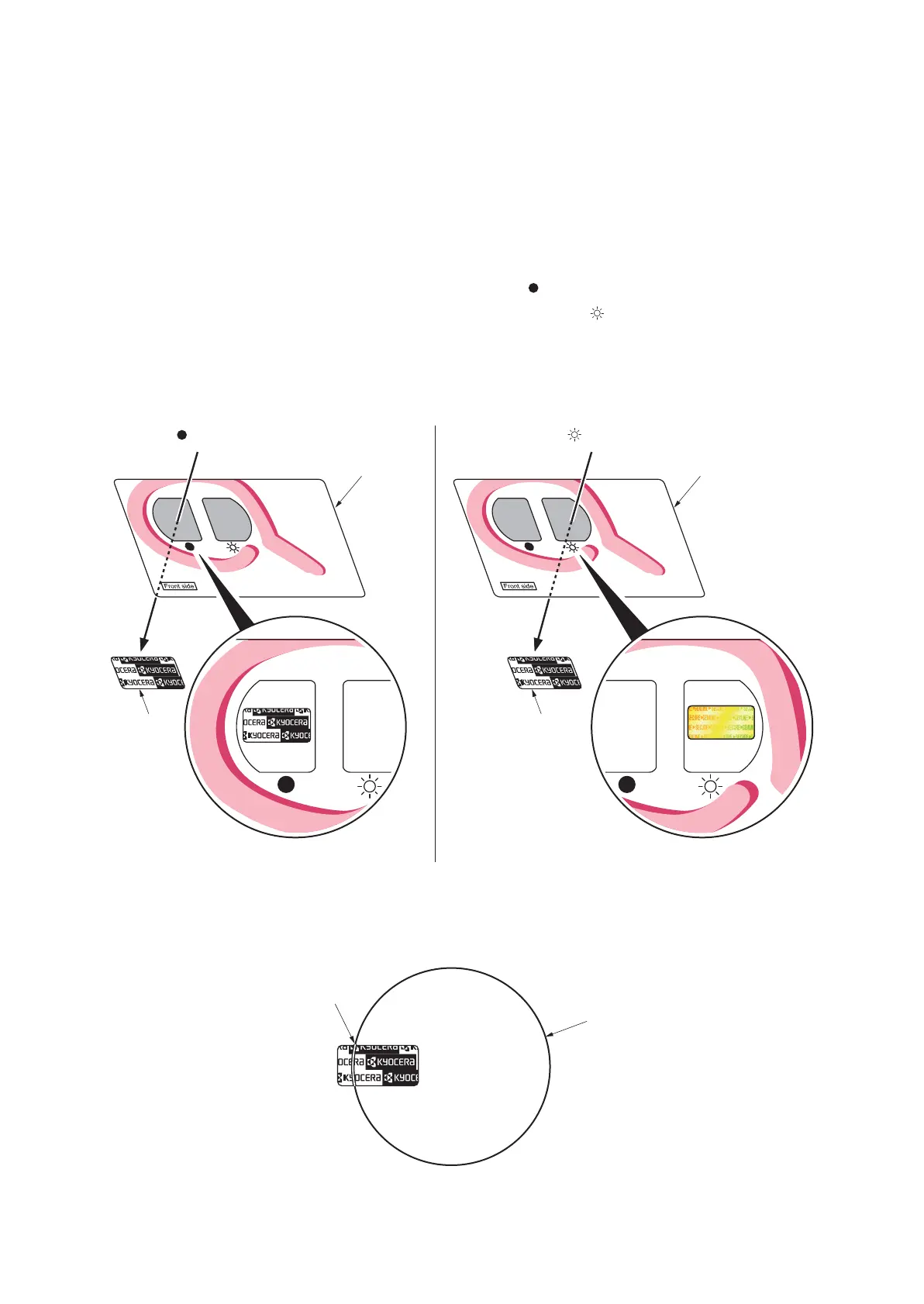 Hold the validation viewer over the left side part of the brand protection seal on the toner container. Through