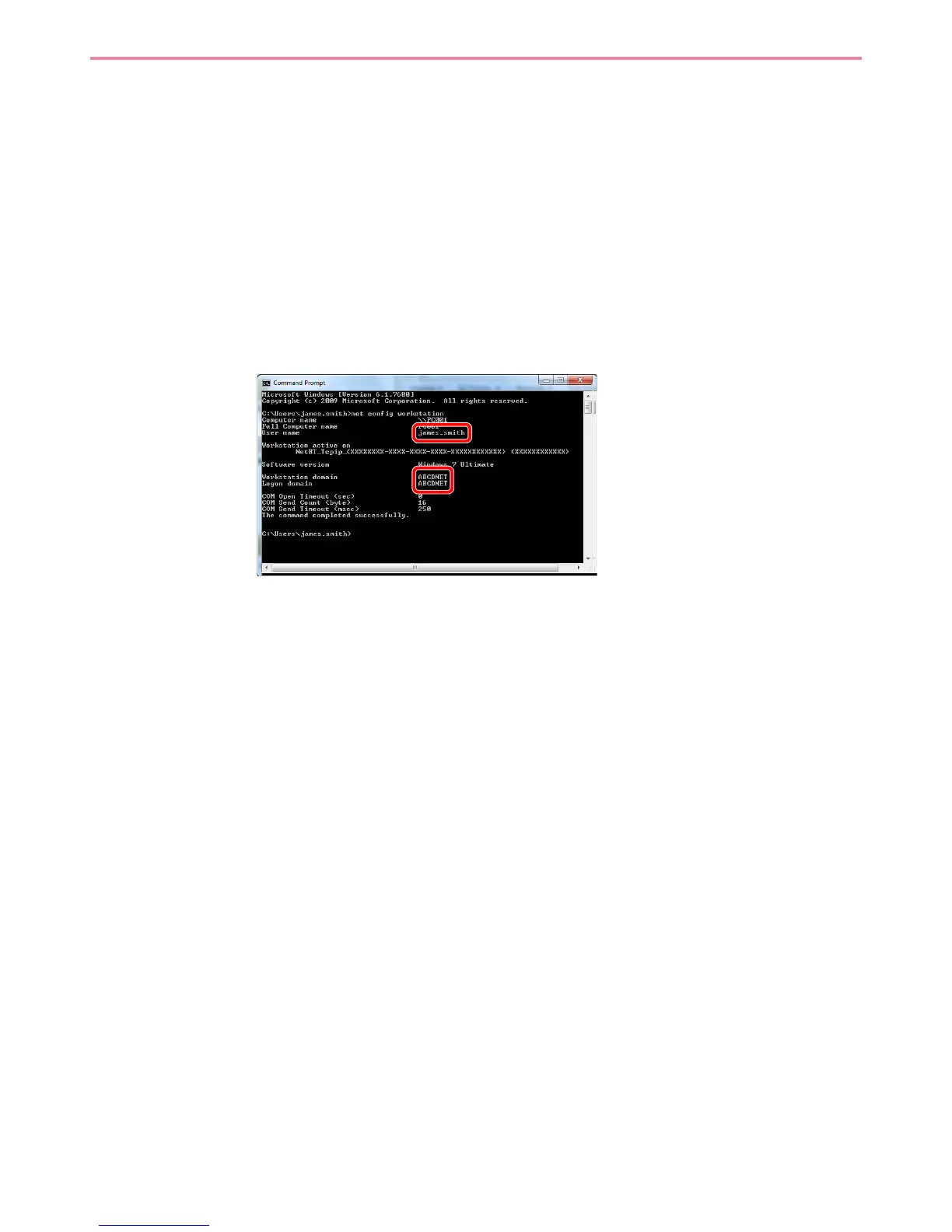 Screen example: user name "james.smith" and domain name "ABCDNET"