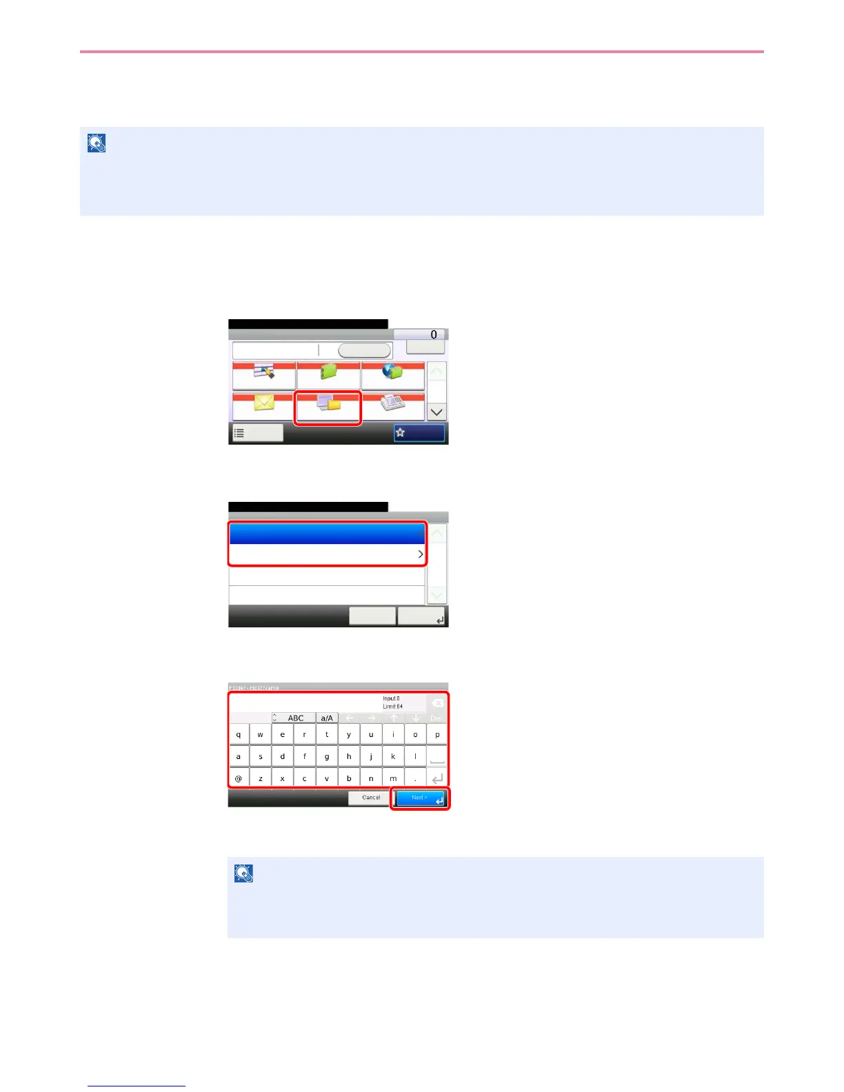 Specify either the desired shared folder on a computer or an FTP server as the destination.