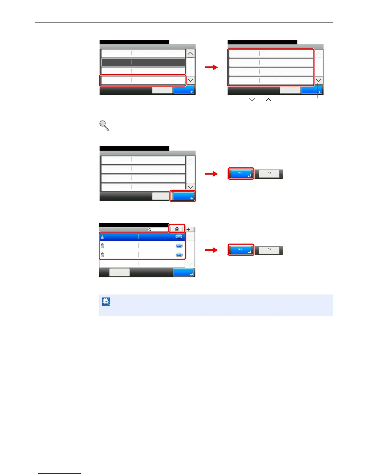 Also, you can delete the user by selecting the user, press [Menu] and then [Delete].