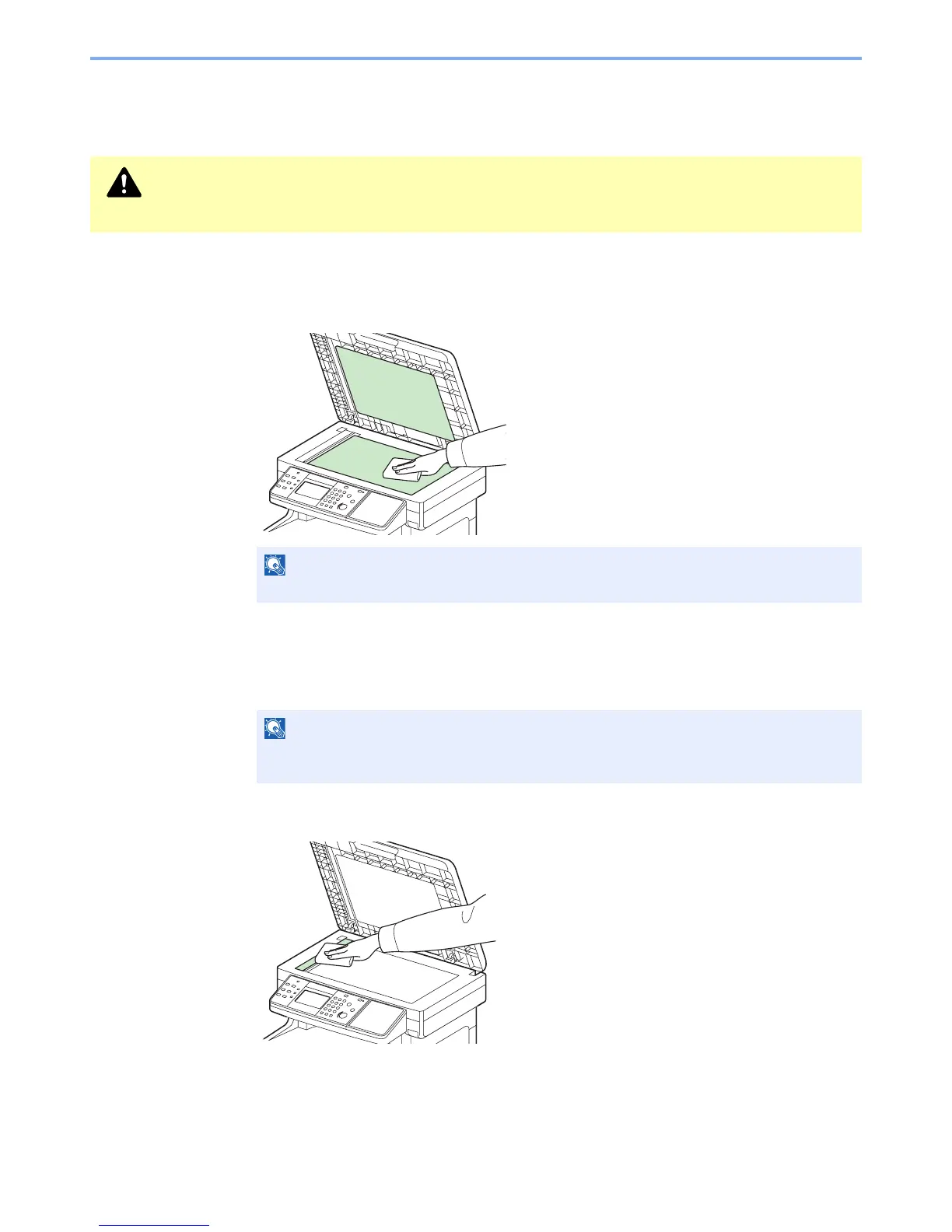 Wipe the inside of the document processor and the glass platen with a soft cloth dampened