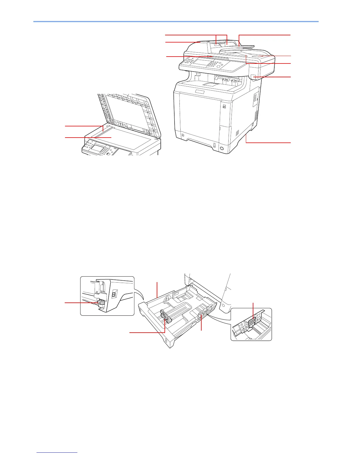 * To prevent toppling, the top cover and document processor cannot be opened at the same time.