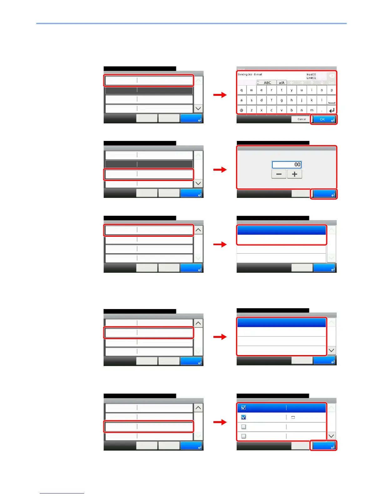 When the job type is [Send] or [FAX], selects the Destination Recall Method.
