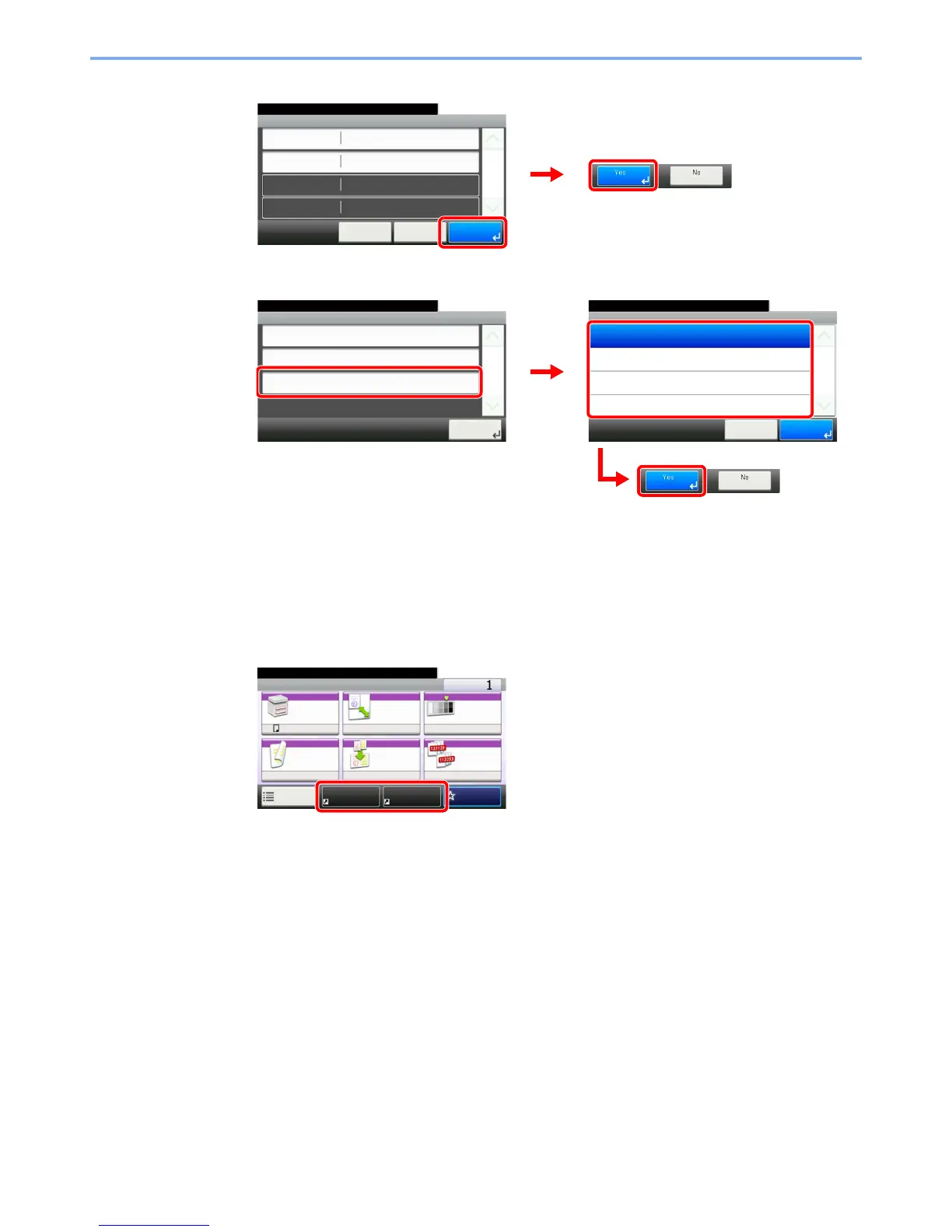The registered shortcut will be displayed on the Copy, Send, FAX, Print from USB Memory, or