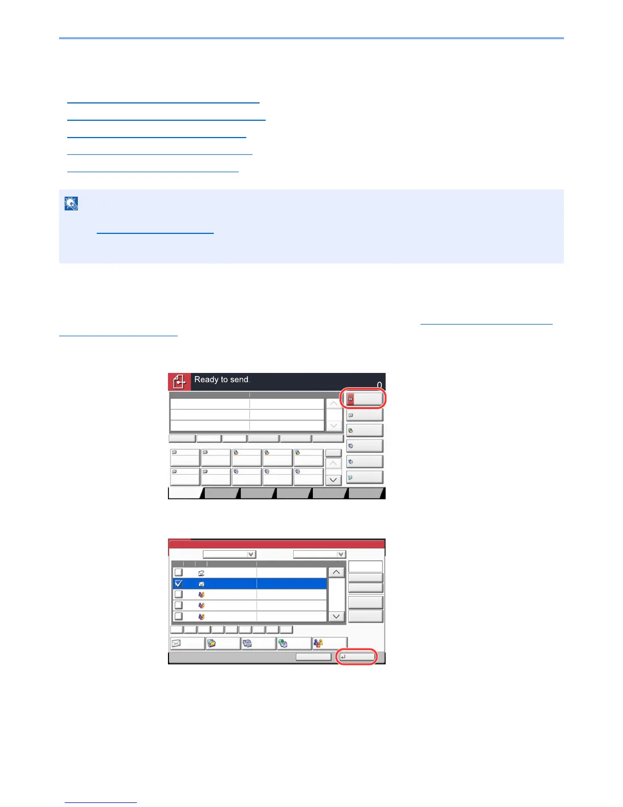 For more information about how to register destinations in the Address Book, refer to Registering Destinations in the