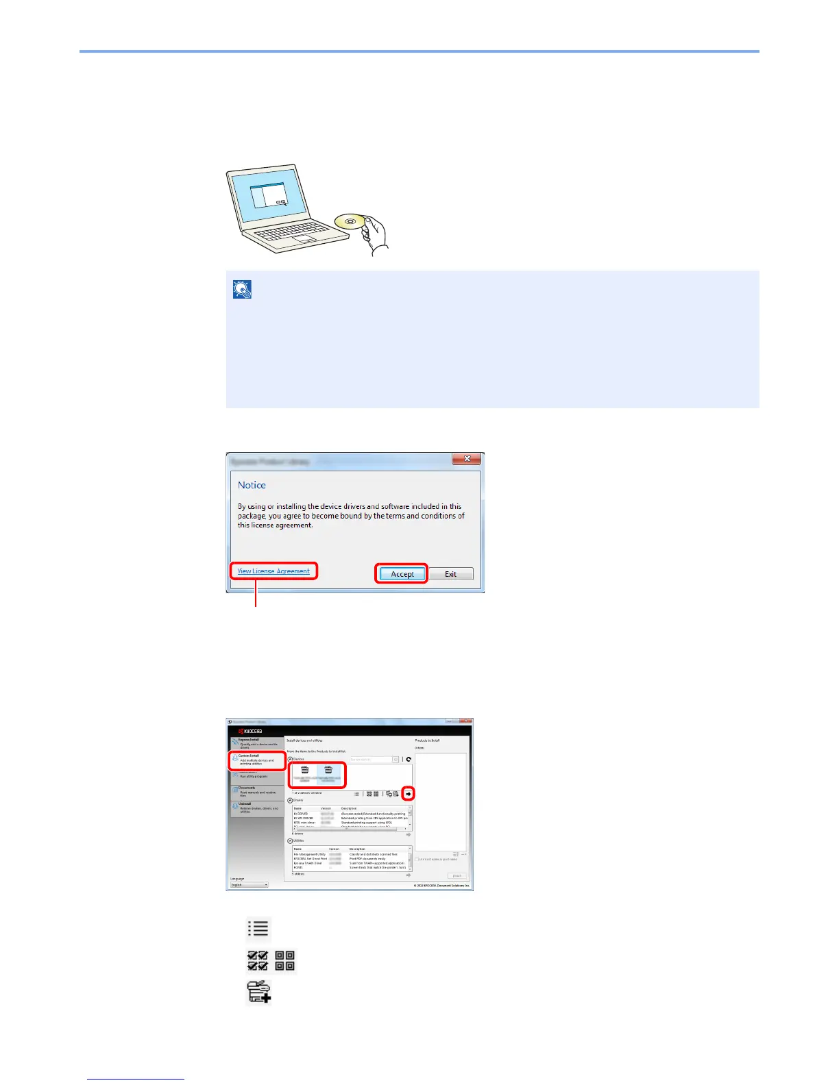 The following procedure is an example for installing the software in Windows 7 using [Custom Install].