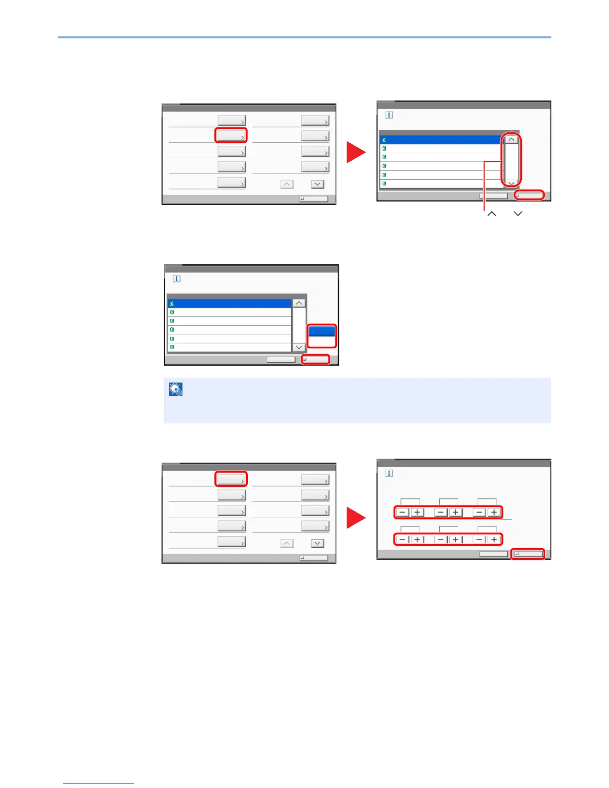 Press [+] or [-] in each setting.