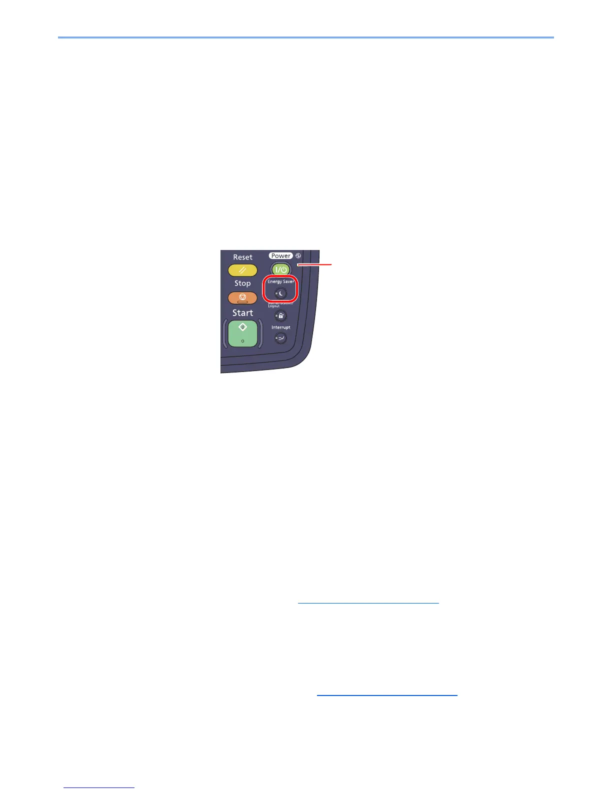 To activate Low Power Mode, press the [Energy Saver] key. Touch panel and all indicators on the operation panel will