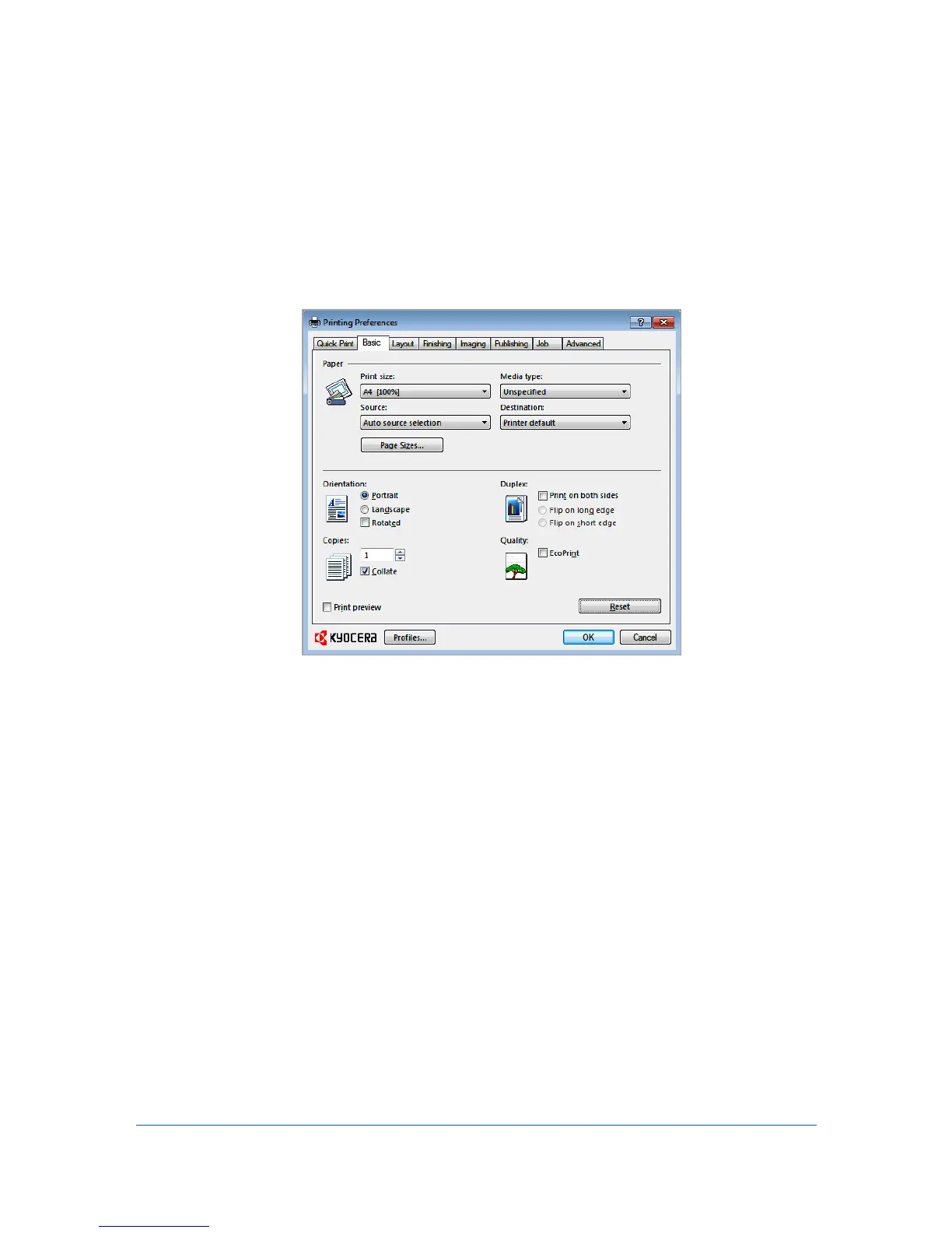 The Basic tab contains several settings for the most commonly used printing