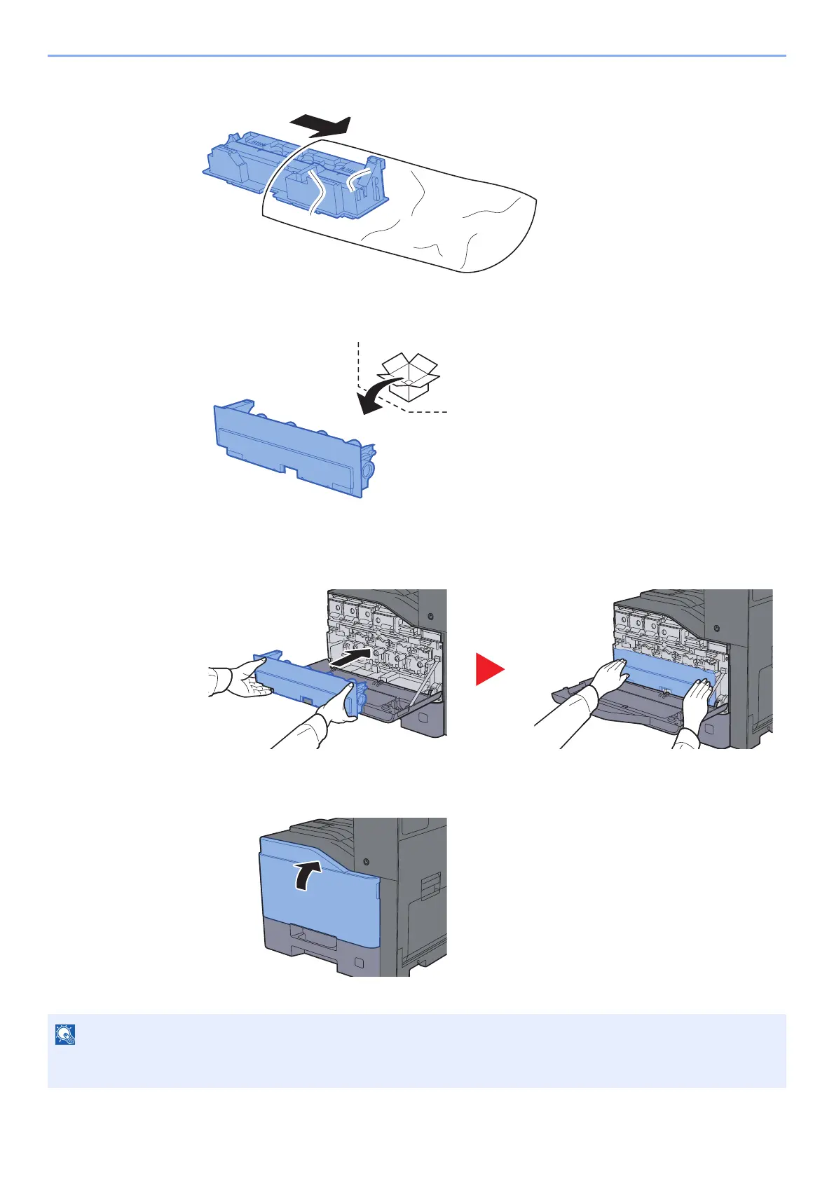 Return the exhausted waste toner box to your dealer or service representative. The collected waste toner box will be