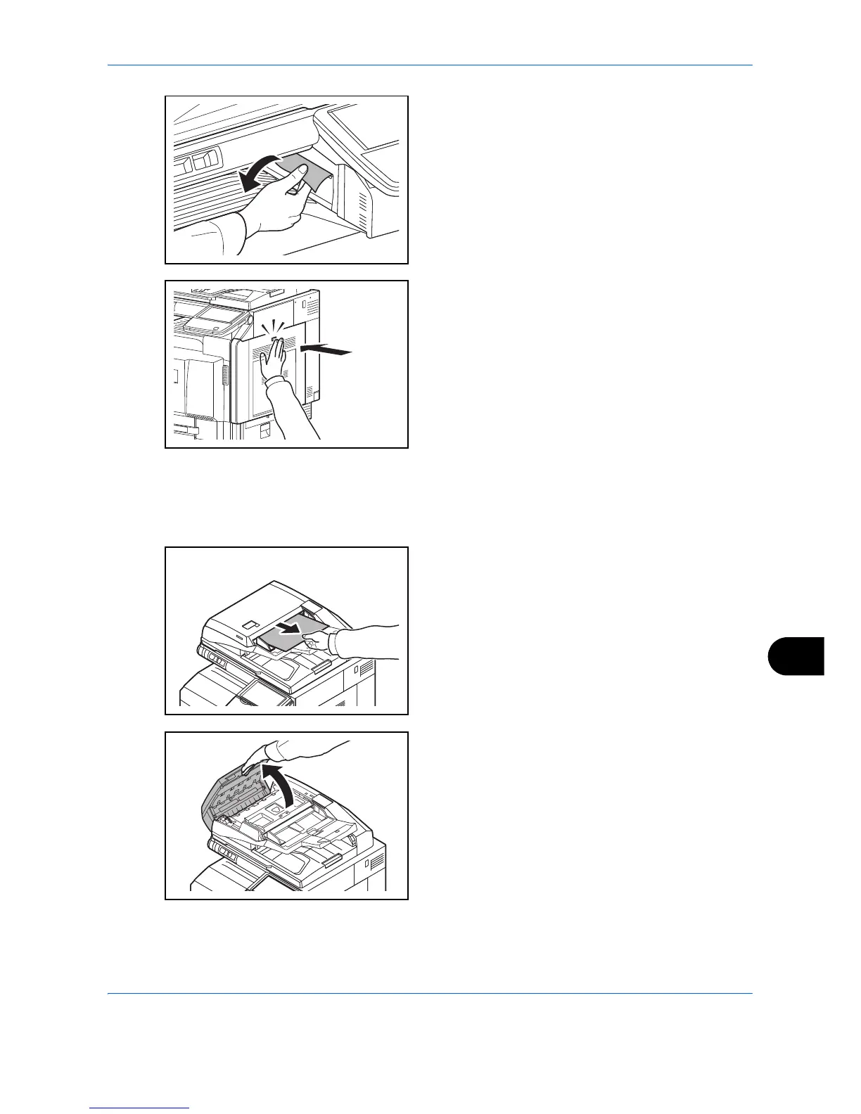 Follow the steps below to clear paper jams in the optional document processor or document processor (Dual