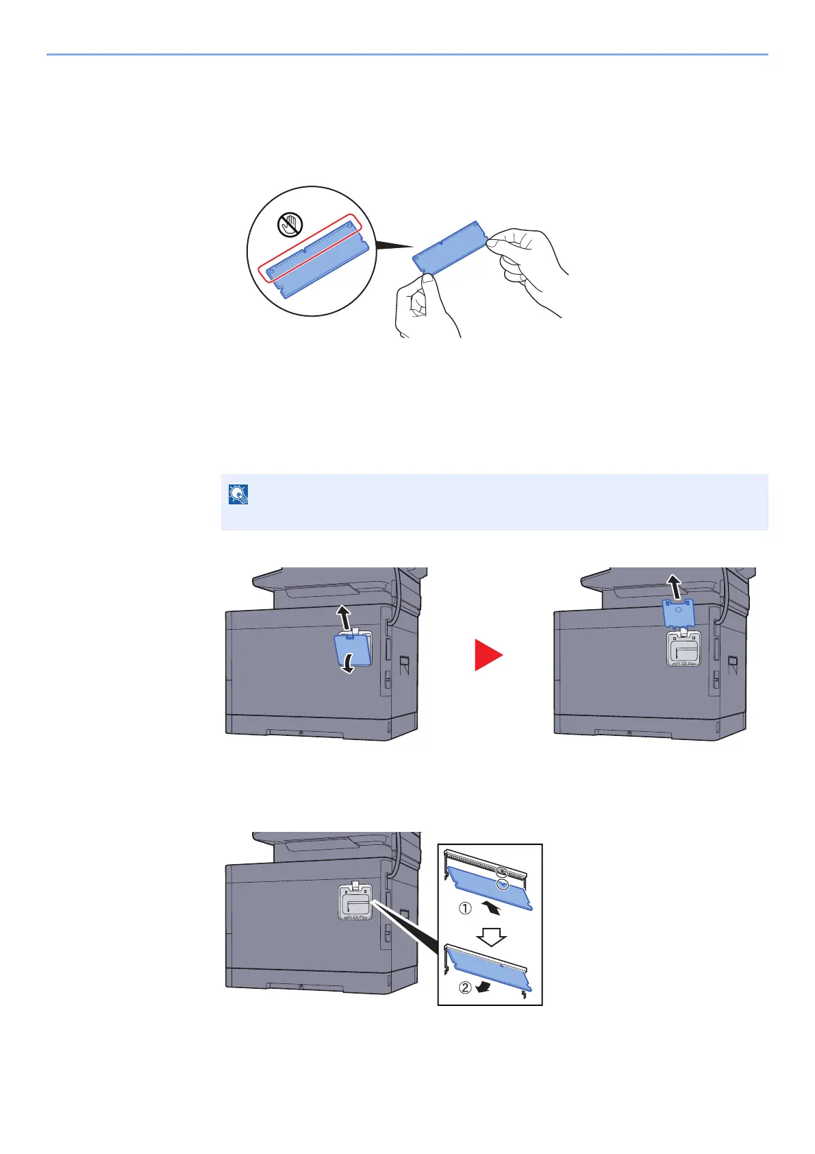 To protect electronic parts, discharge static electricity from your body by touching a water pipe (faucet) or other large