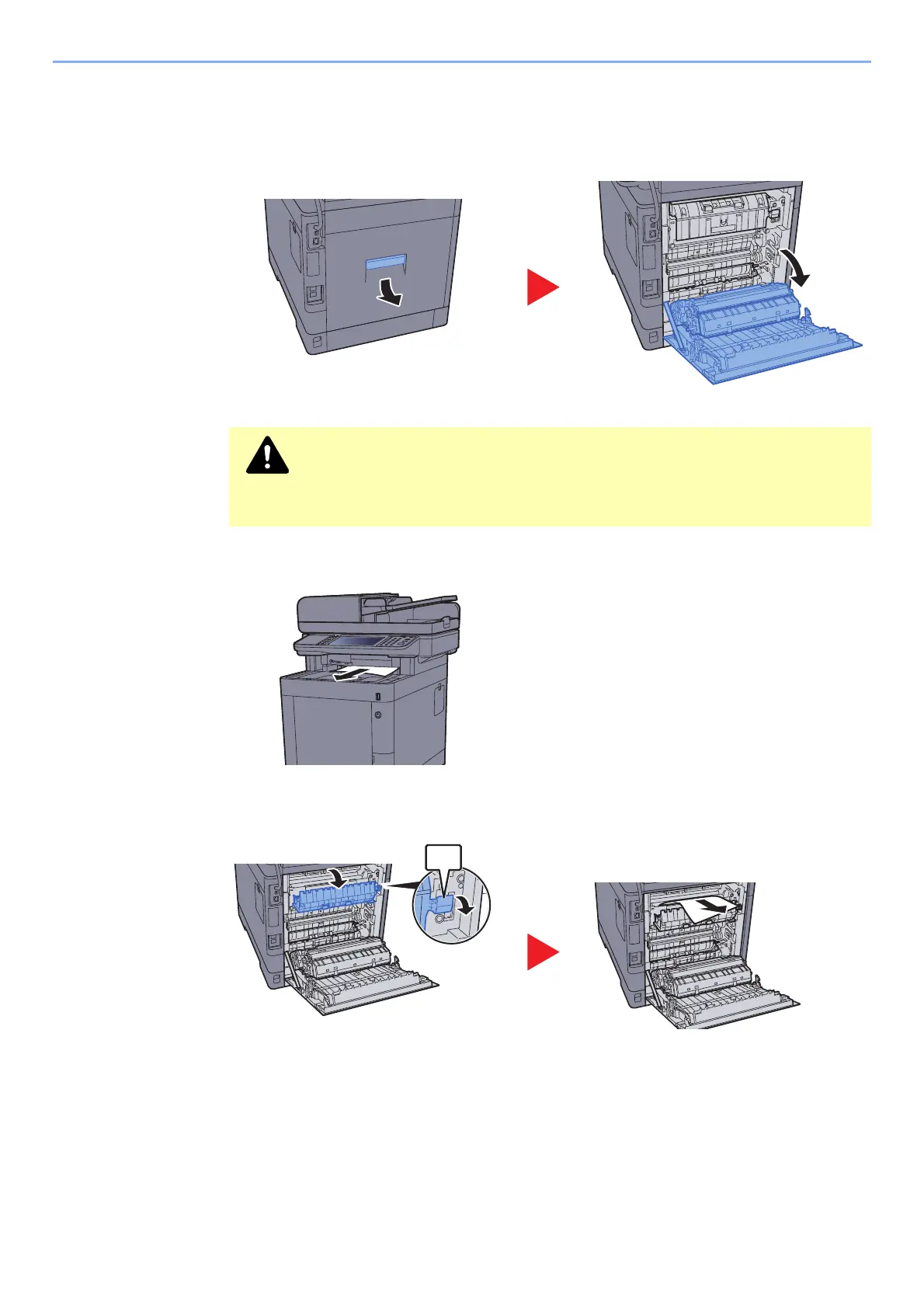 Some parts are very hot inside the machine. Exercise caution as there is a risk of