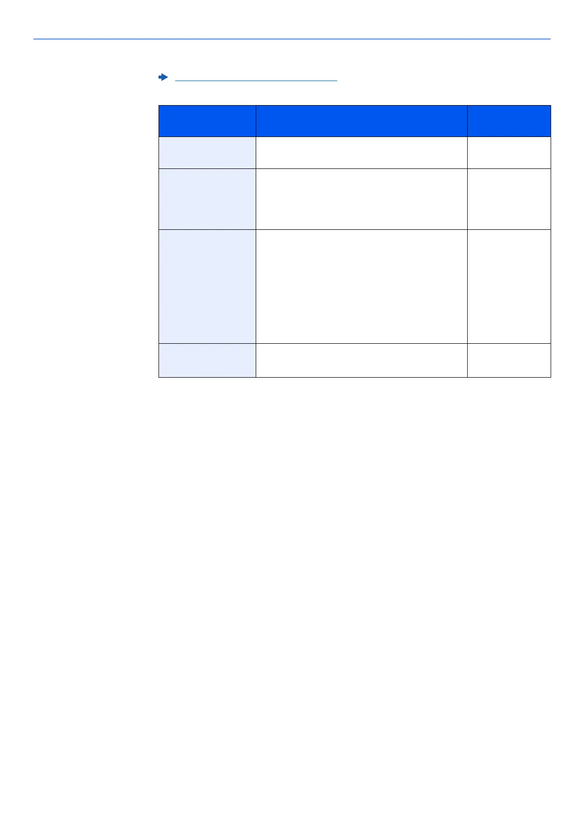 The table below lists the items to be set.