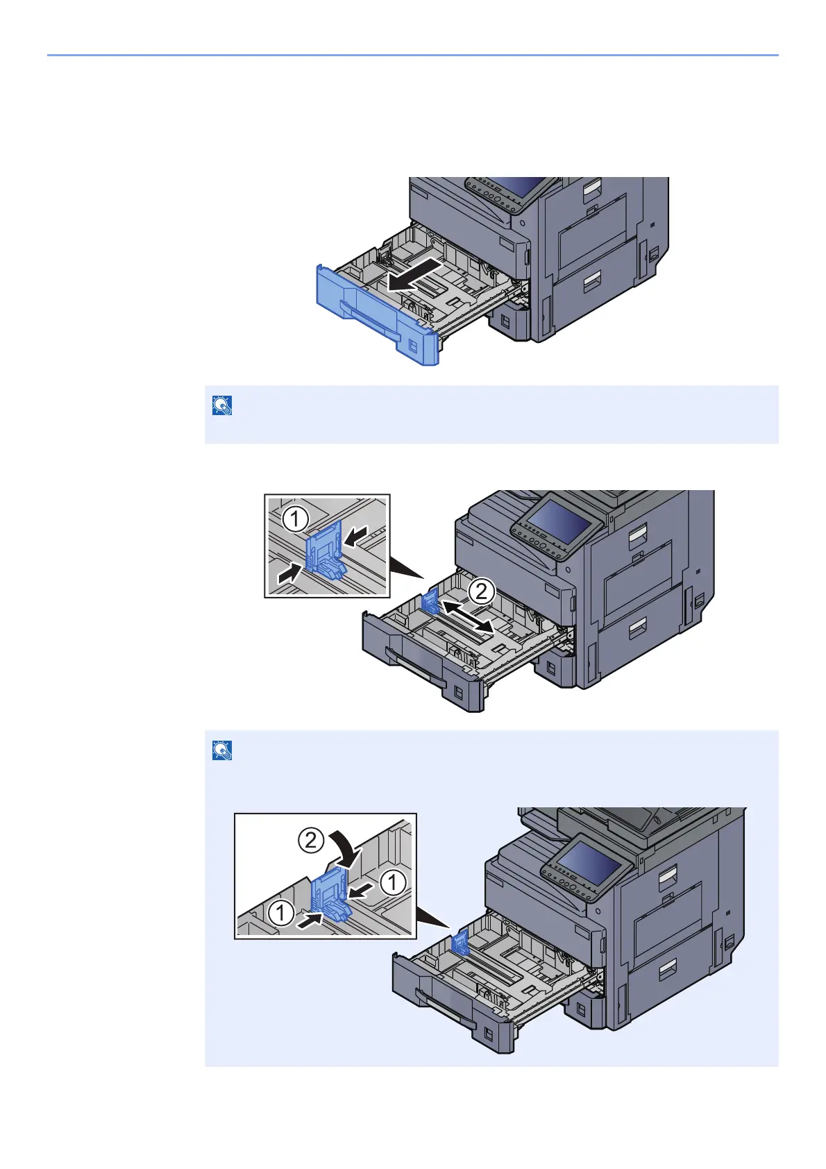 When using Ledger size paper, move the paper length guide to the extreme left and lay it