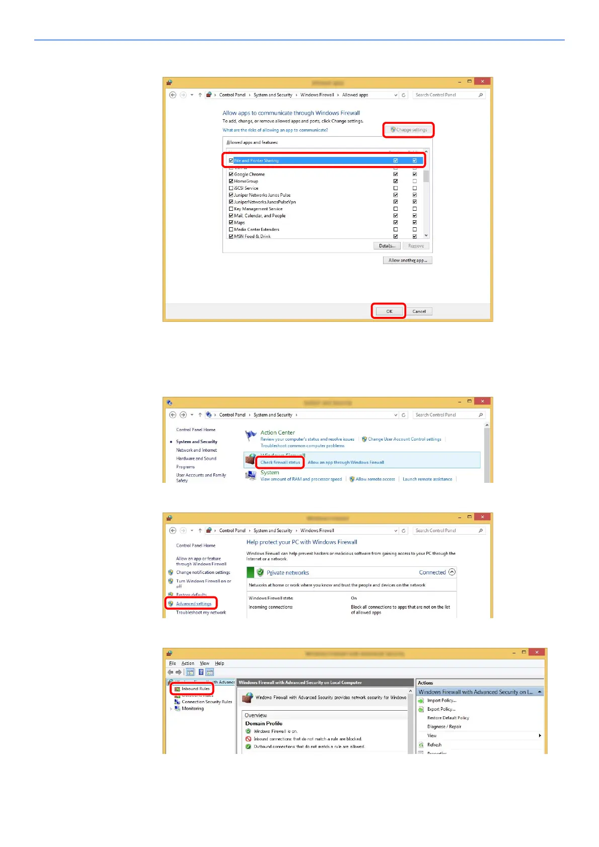 1 In charms on Desktop, click [Settings], [Control Panel], [System and Security], and