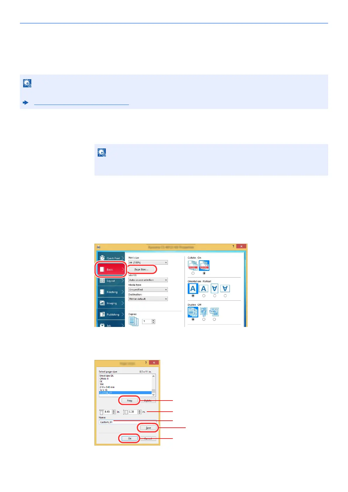 If you loaded a paper size that is not included in the print sizes of the machine, register the paper size in the [Basic] tab
