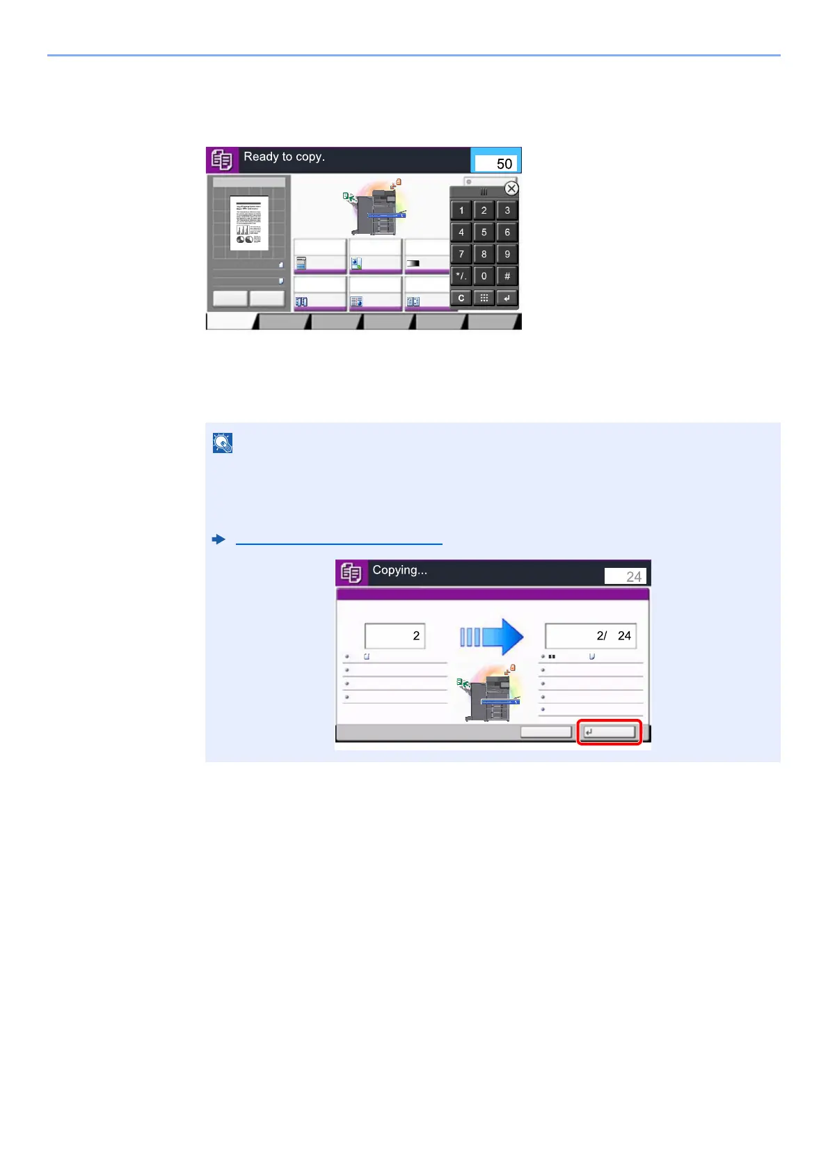 Select the [Numeric Keypad] key or the area for inputting the number of sheets to display the